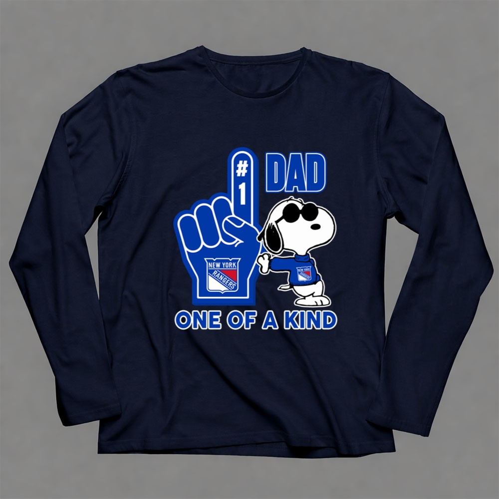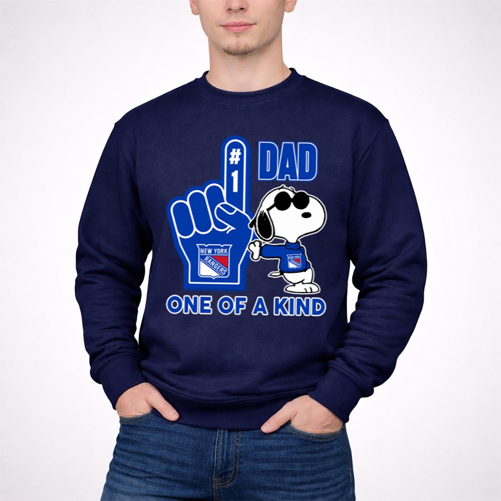 New York Rangers fan apparel, Snoopy sports gear, #1 Dad gifts, Madison Square Garden pride, hockey family traditions, Rangers fandom, sports dad t-shirt, unique father’s day gift
