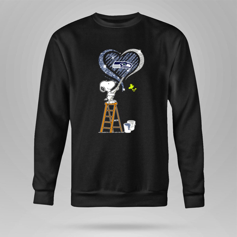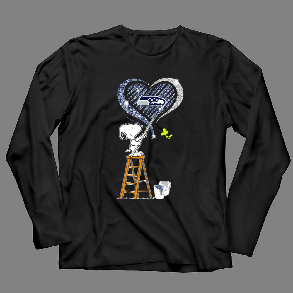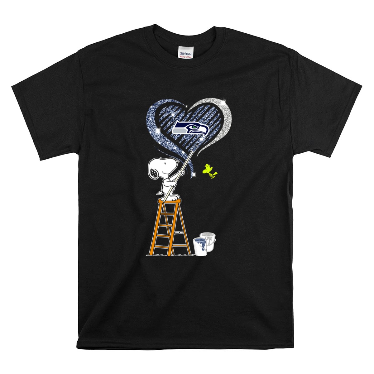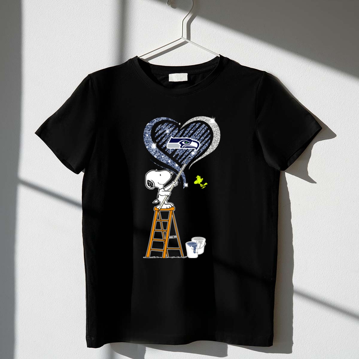 Snoopy Painting Seattle Seahawks Logo Heart With Woodstock Shirt