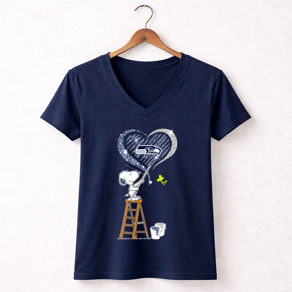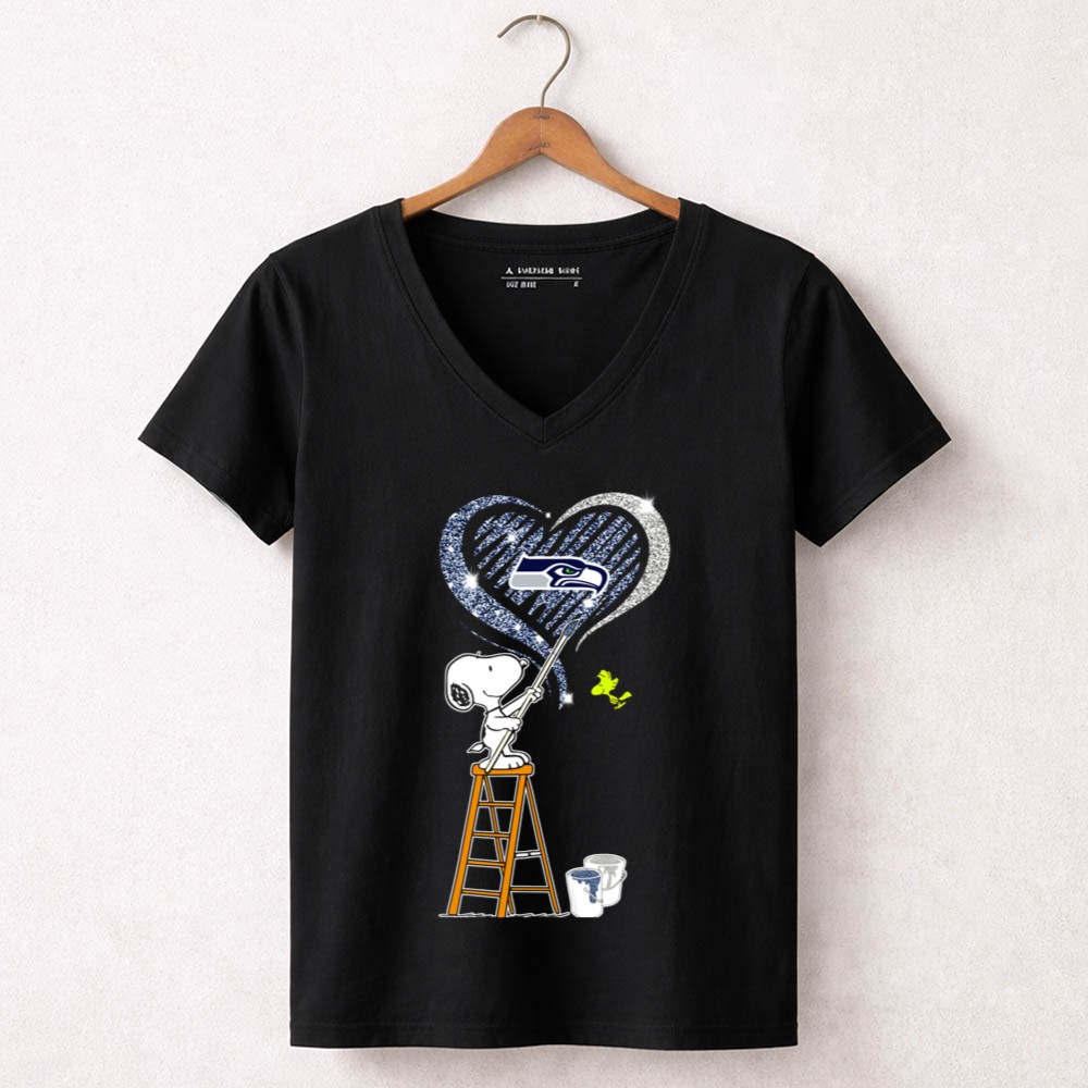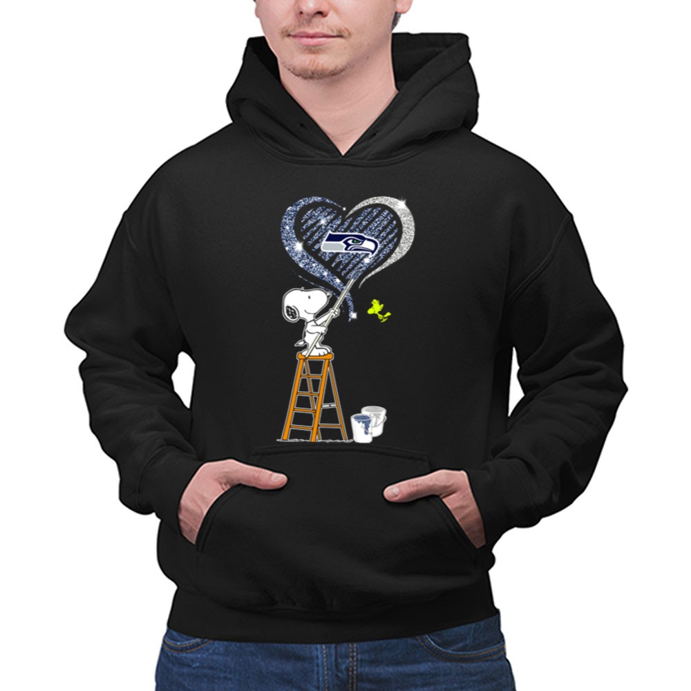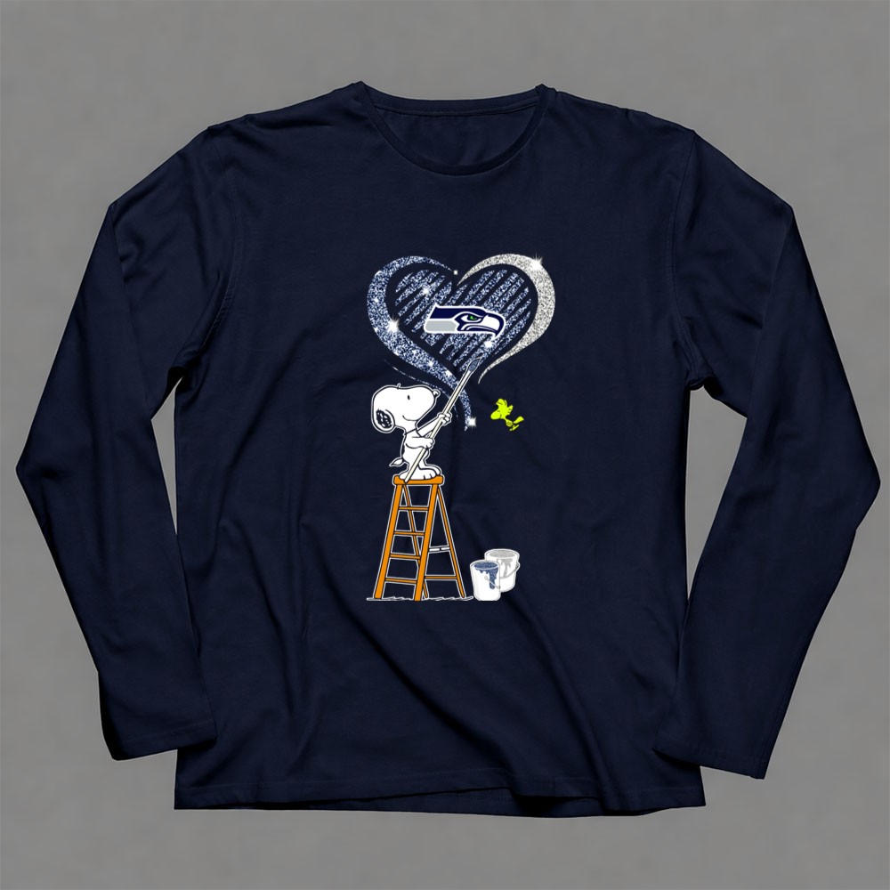 Snoopy Painting Seattle Seahawks Logo Heart With Woodstock Shirt