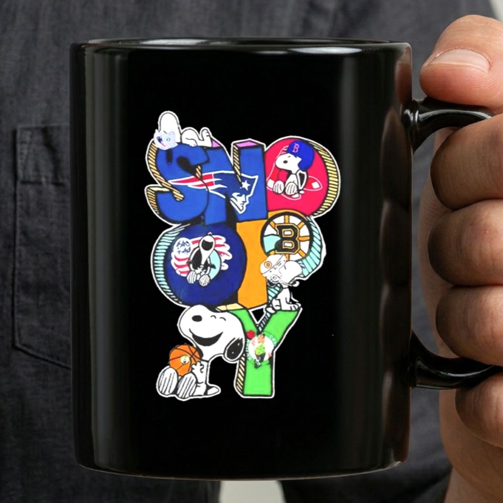 Snoopy Patriots Boston Red Sox Bruins and Boston Celtics Mug