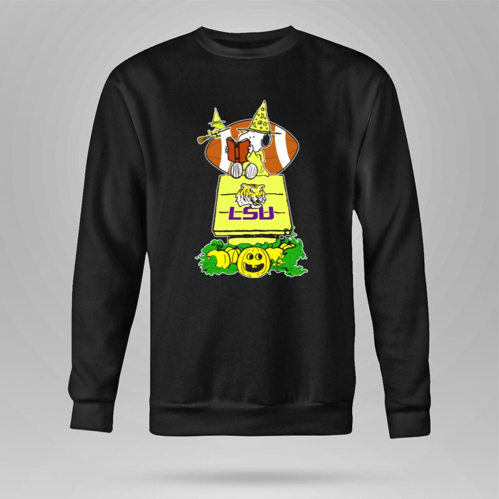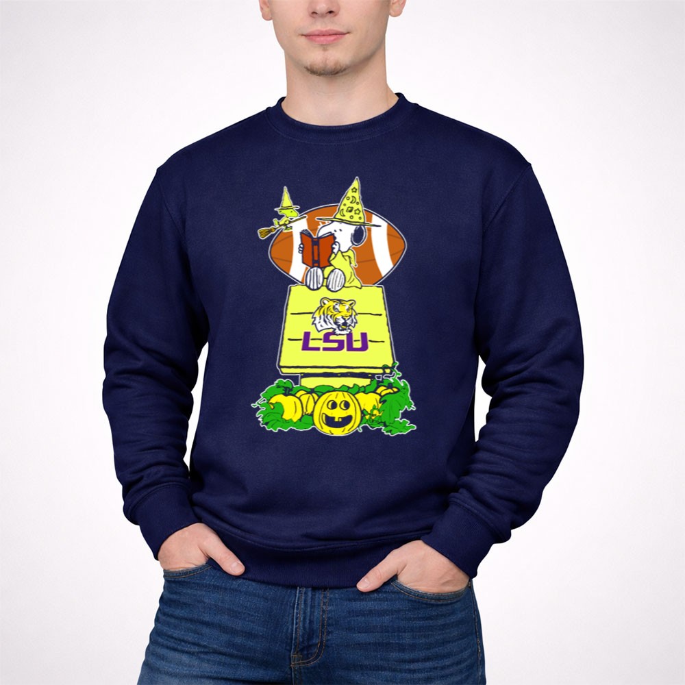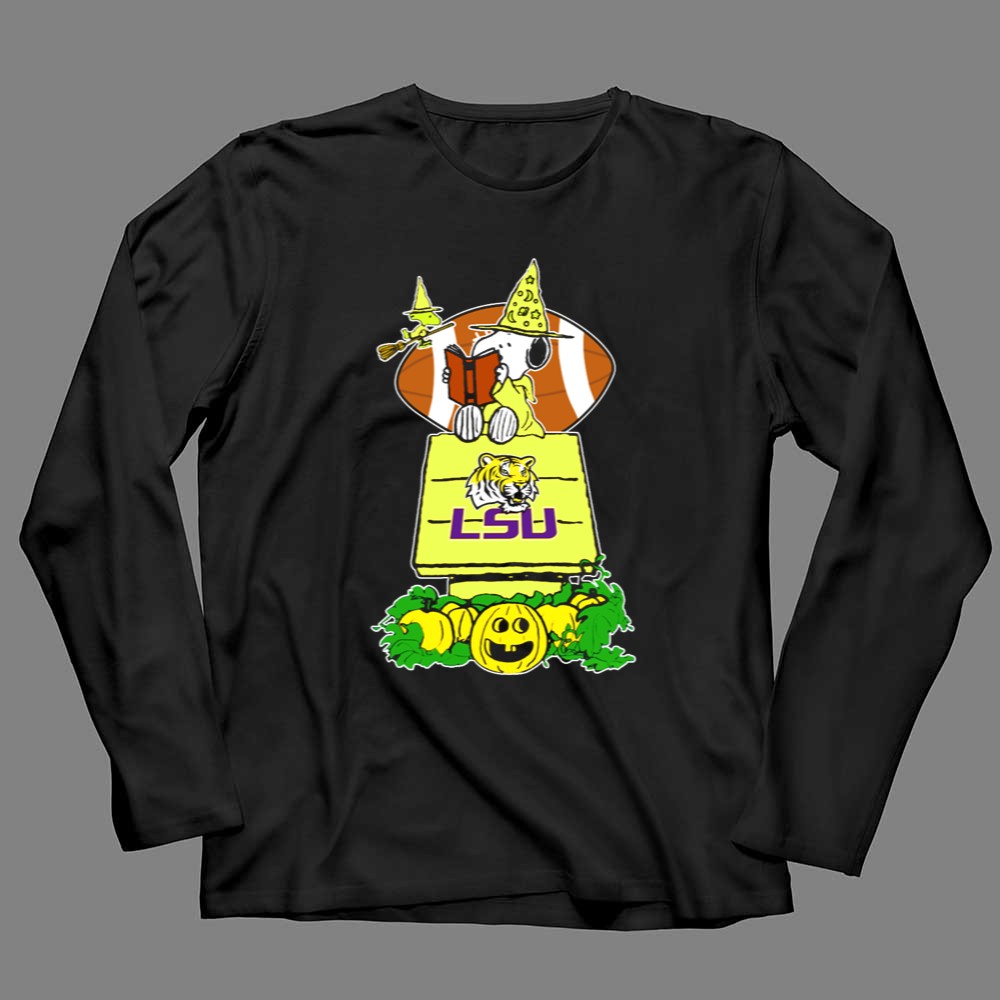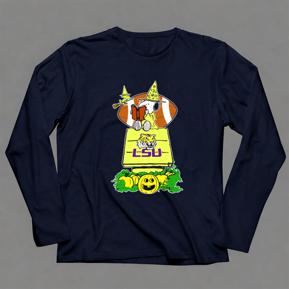 Snoopy Read Books Halloween LSU Tigers Football Pumpkin Patch Scene Shirt