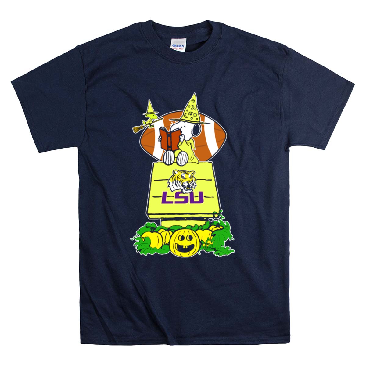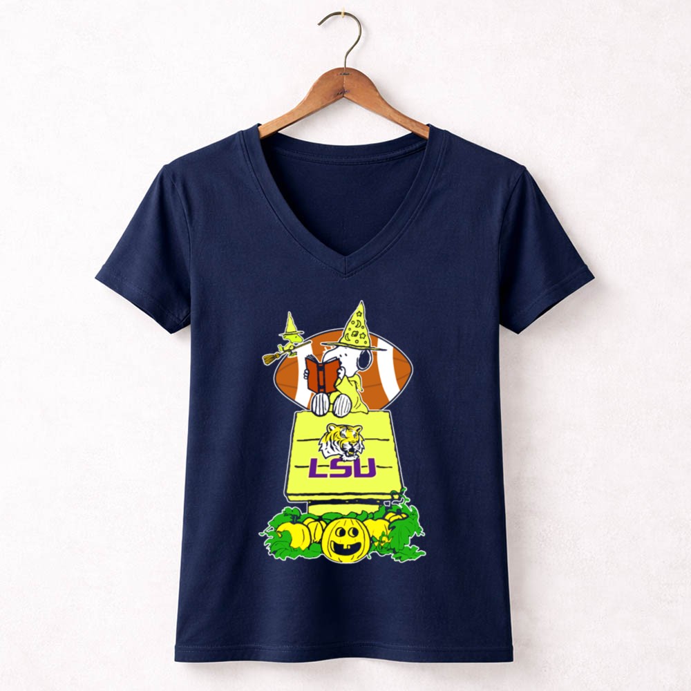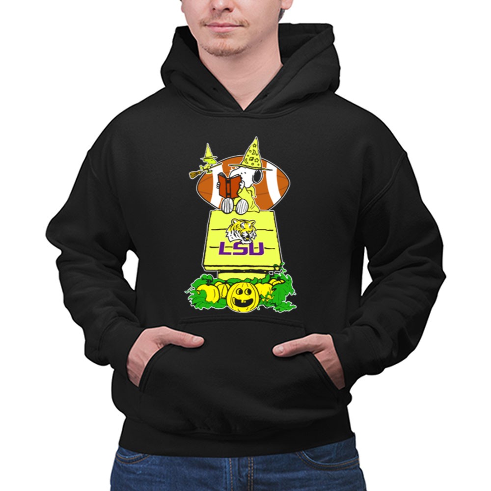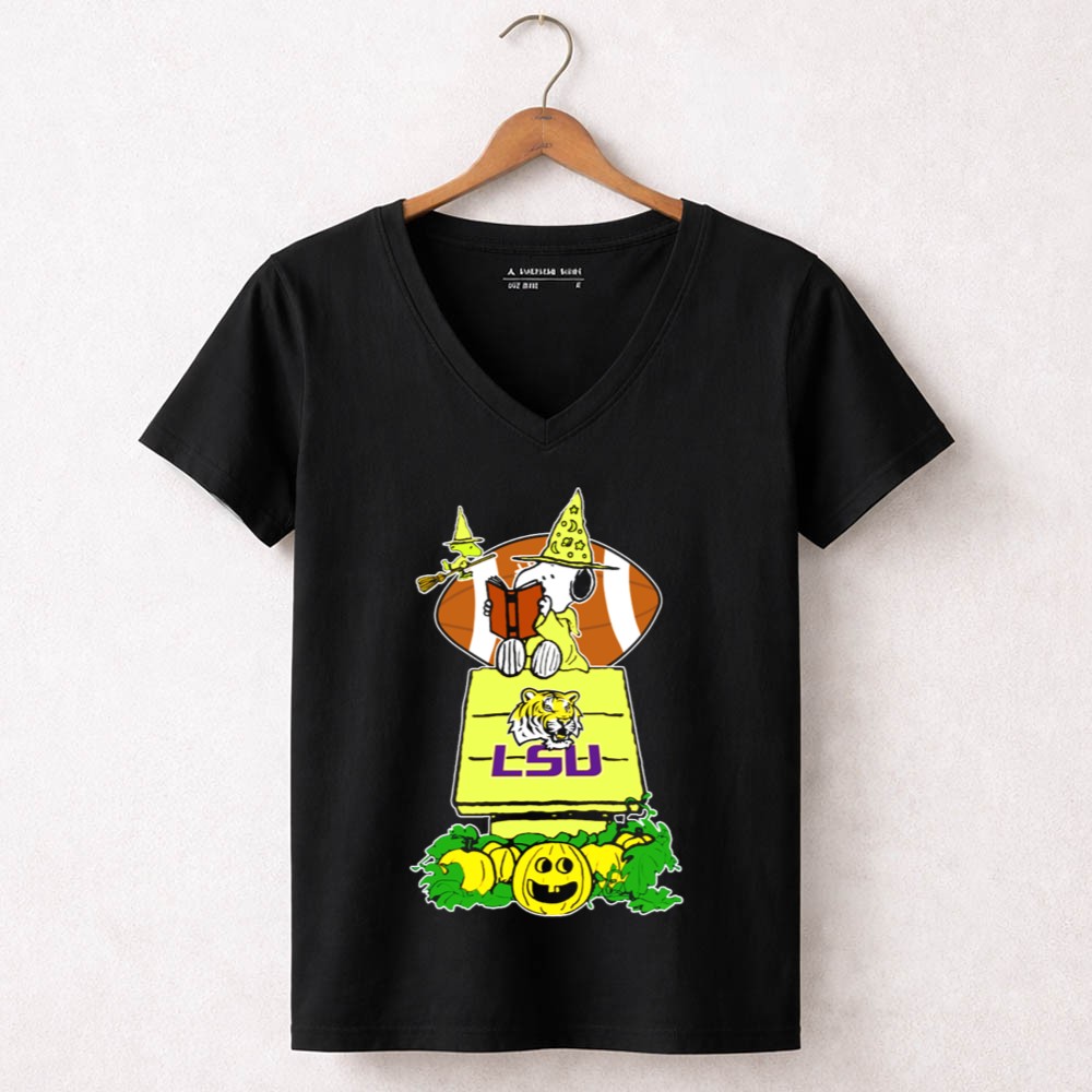 Snoopy Read Books Halloween LSU Tigers Football Pumpkin Patch Scene Shirt