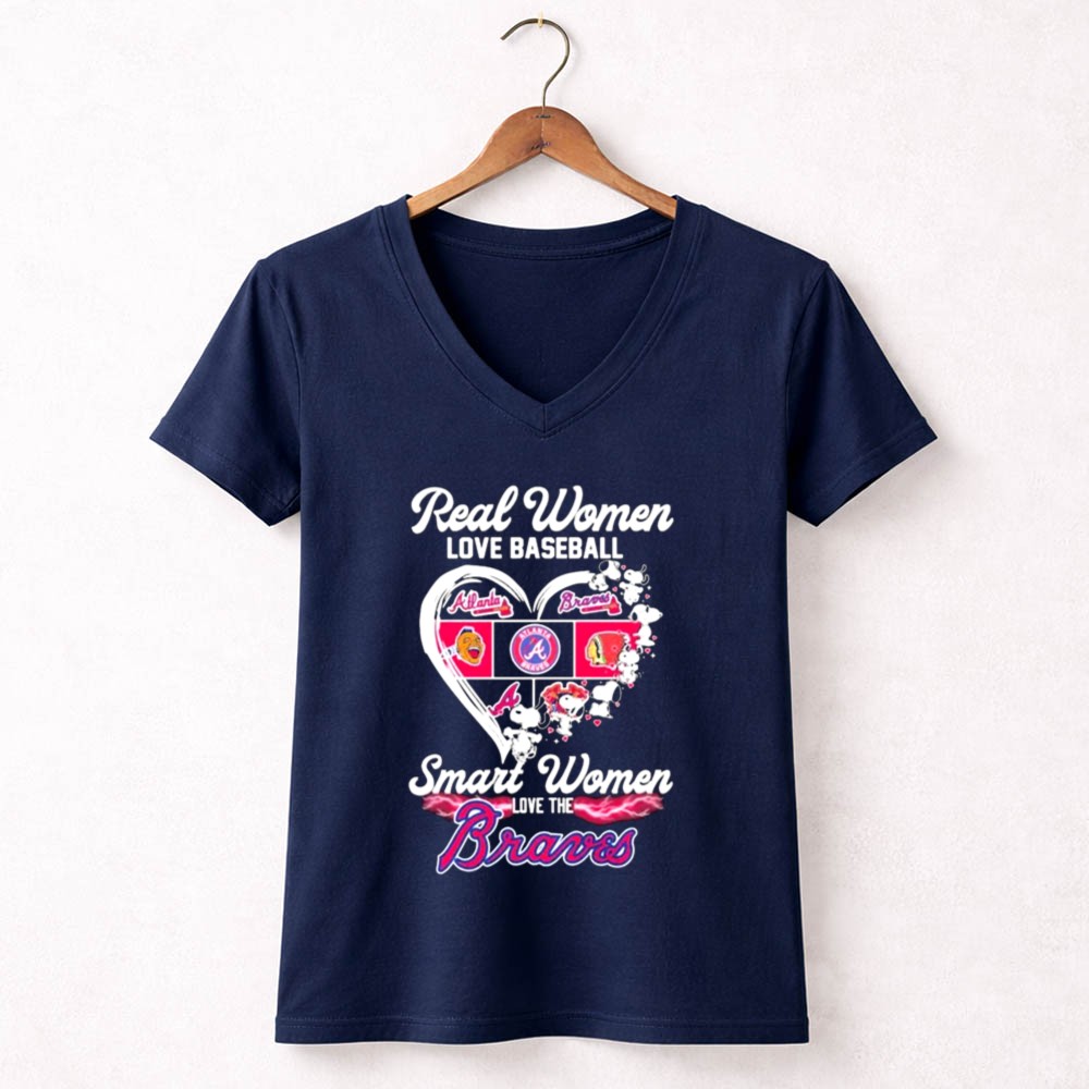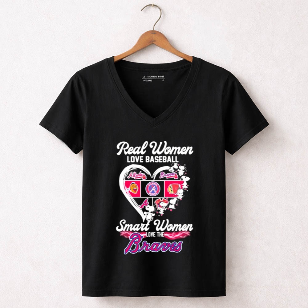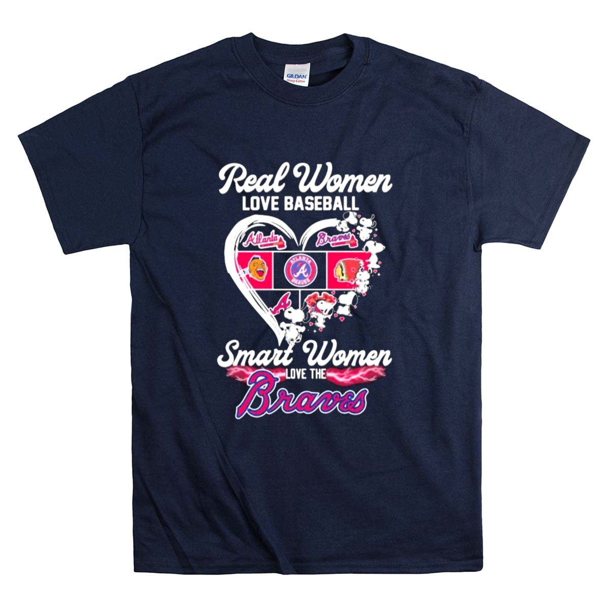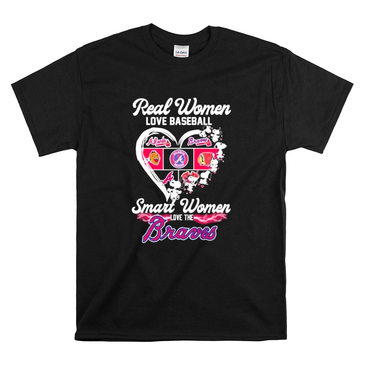 Snoopy Real Women Love Baseball Smart Women Love The Atlanta Braves Heart Shirt