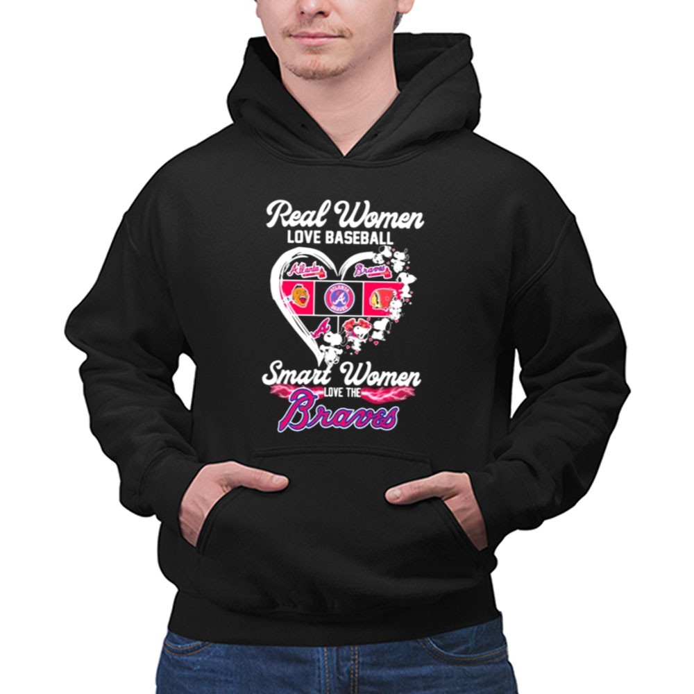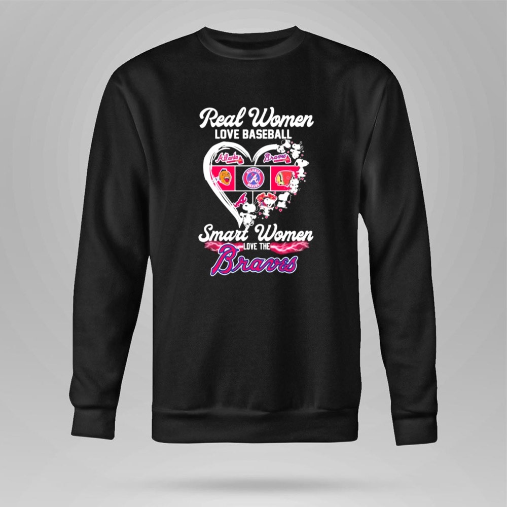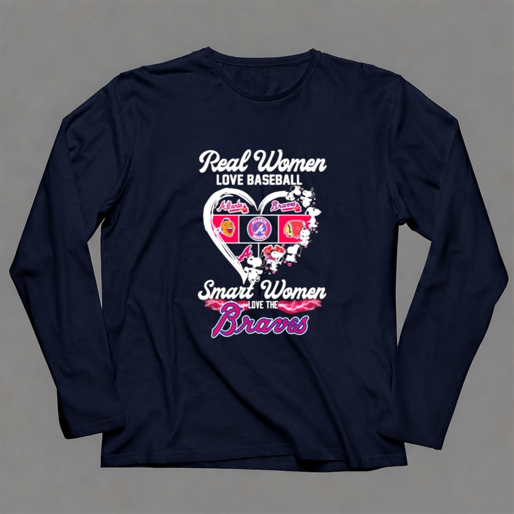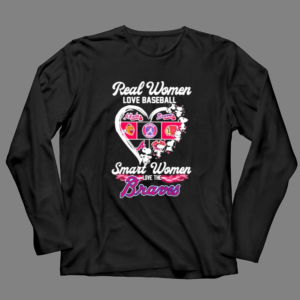 Snoopy Real Women Love Baseball Smart Women Love The Atlanta Braves Heart Shirt