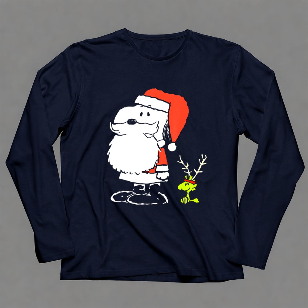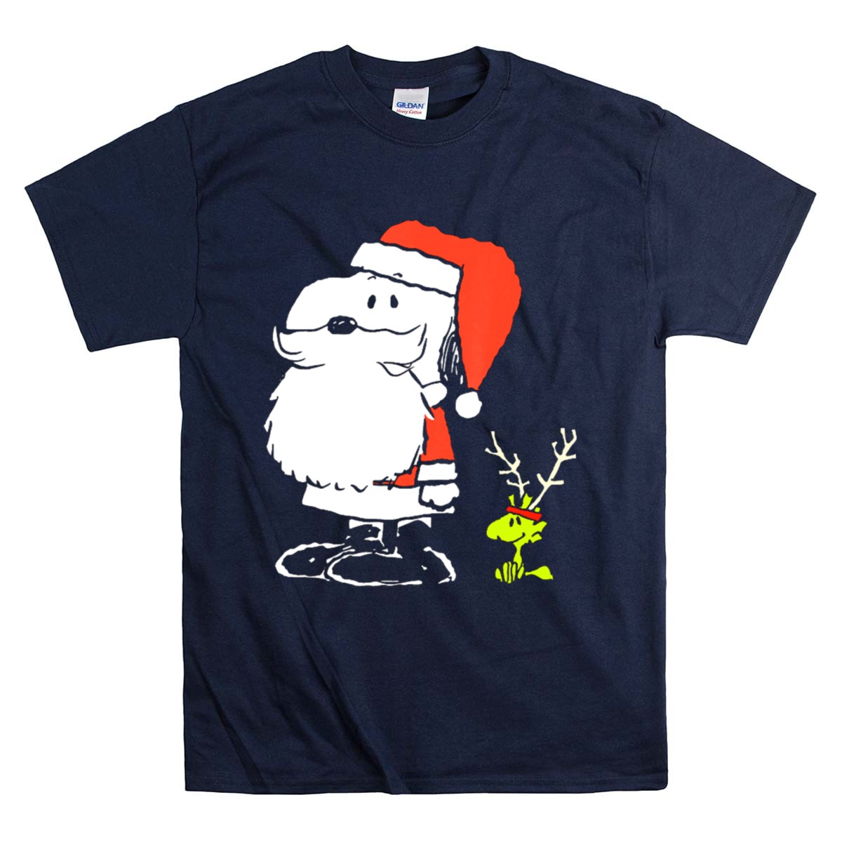 Snoopy Santa with Woodstock Antlers Peanuts Holiday Shirt