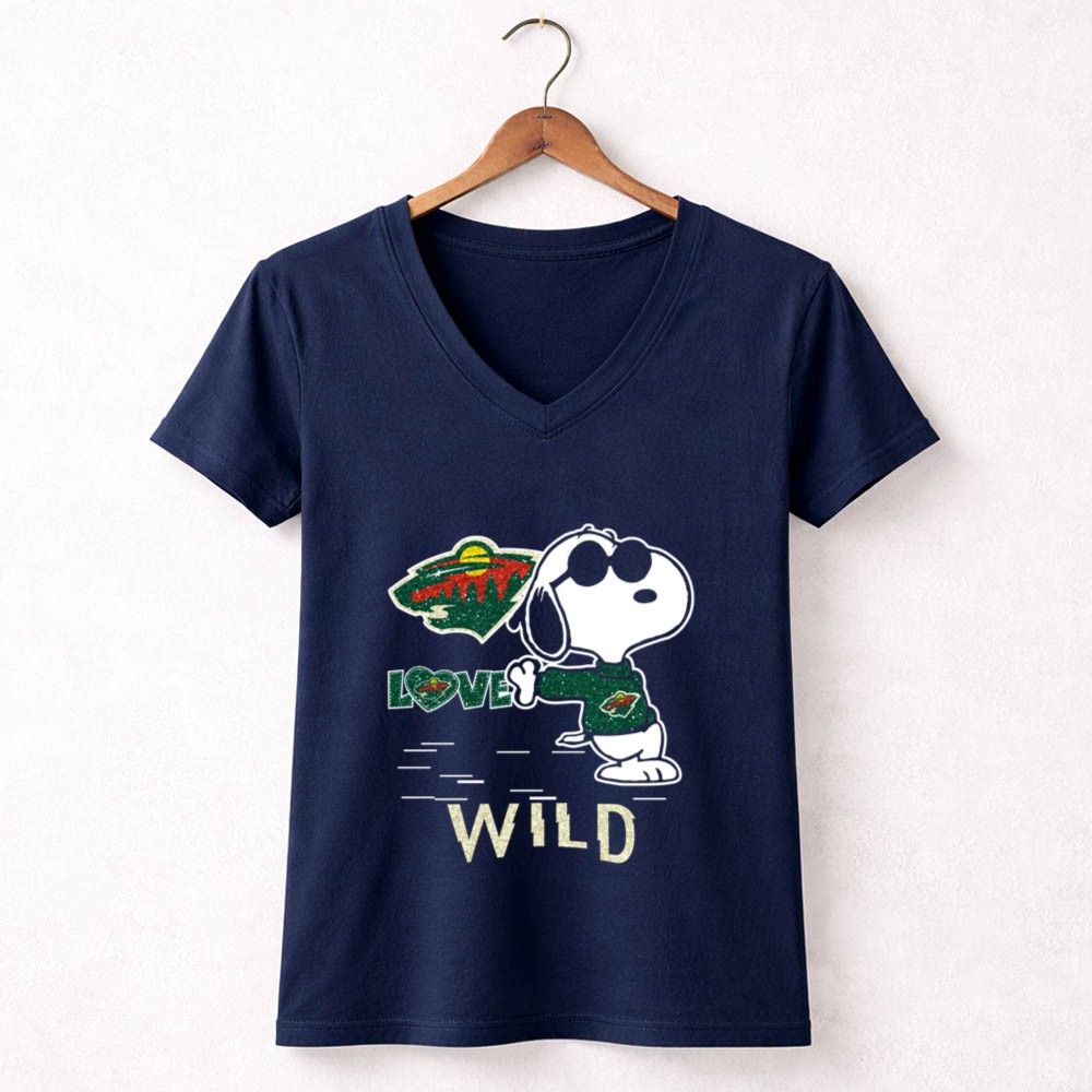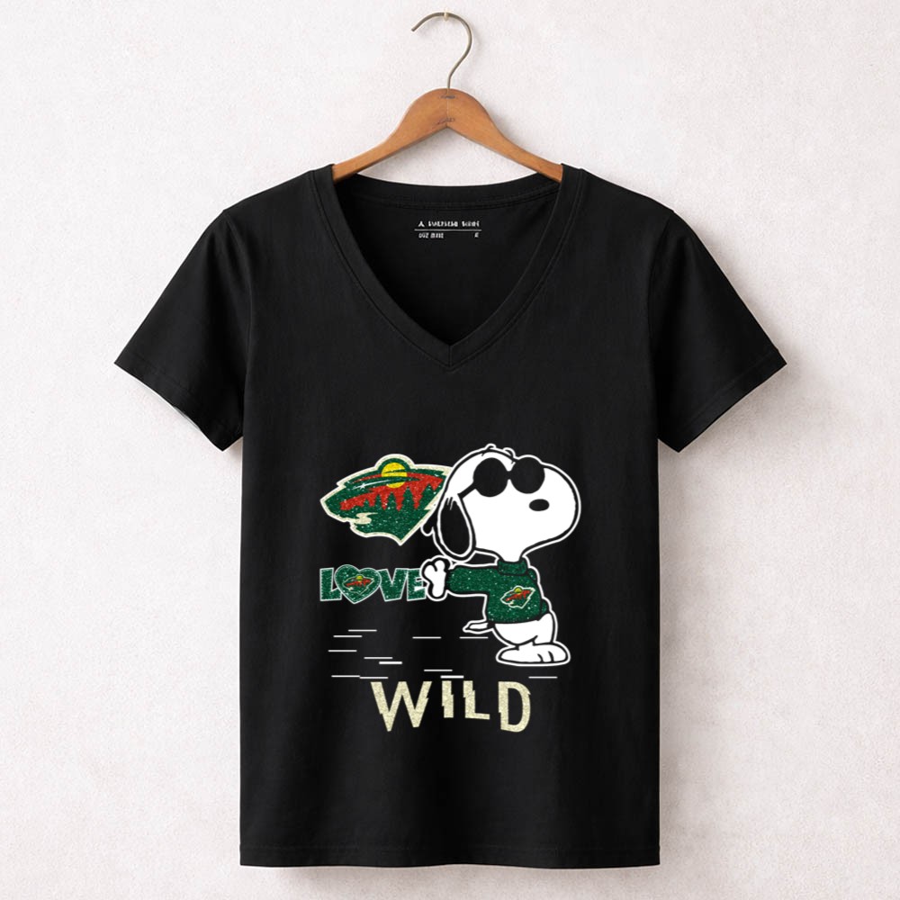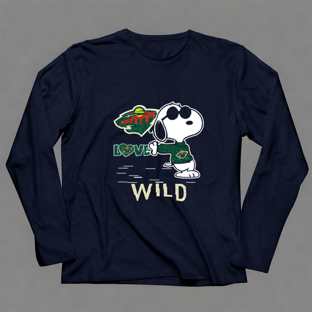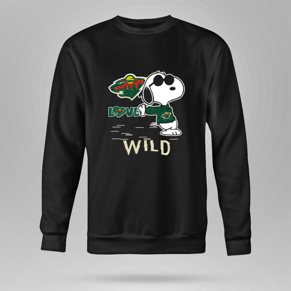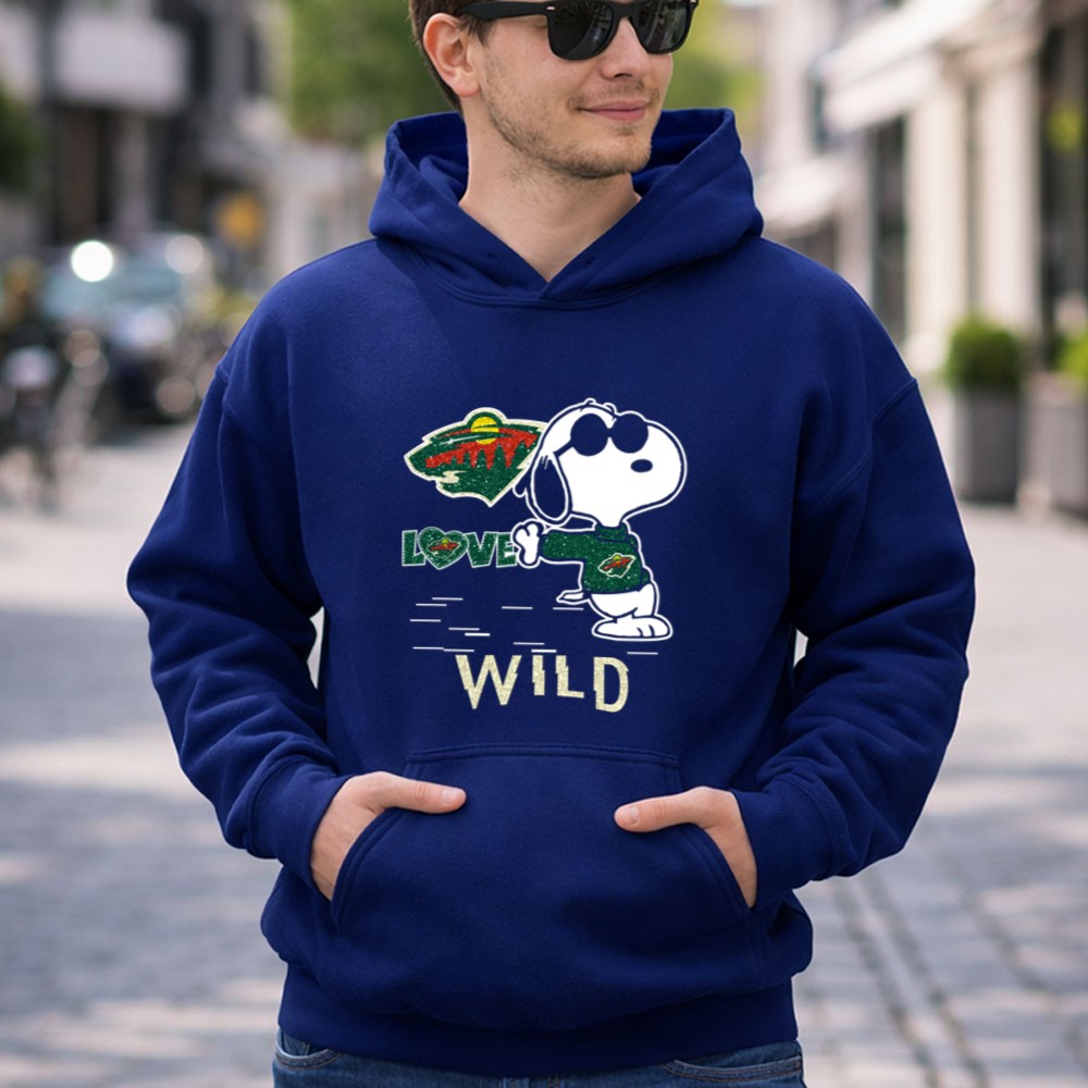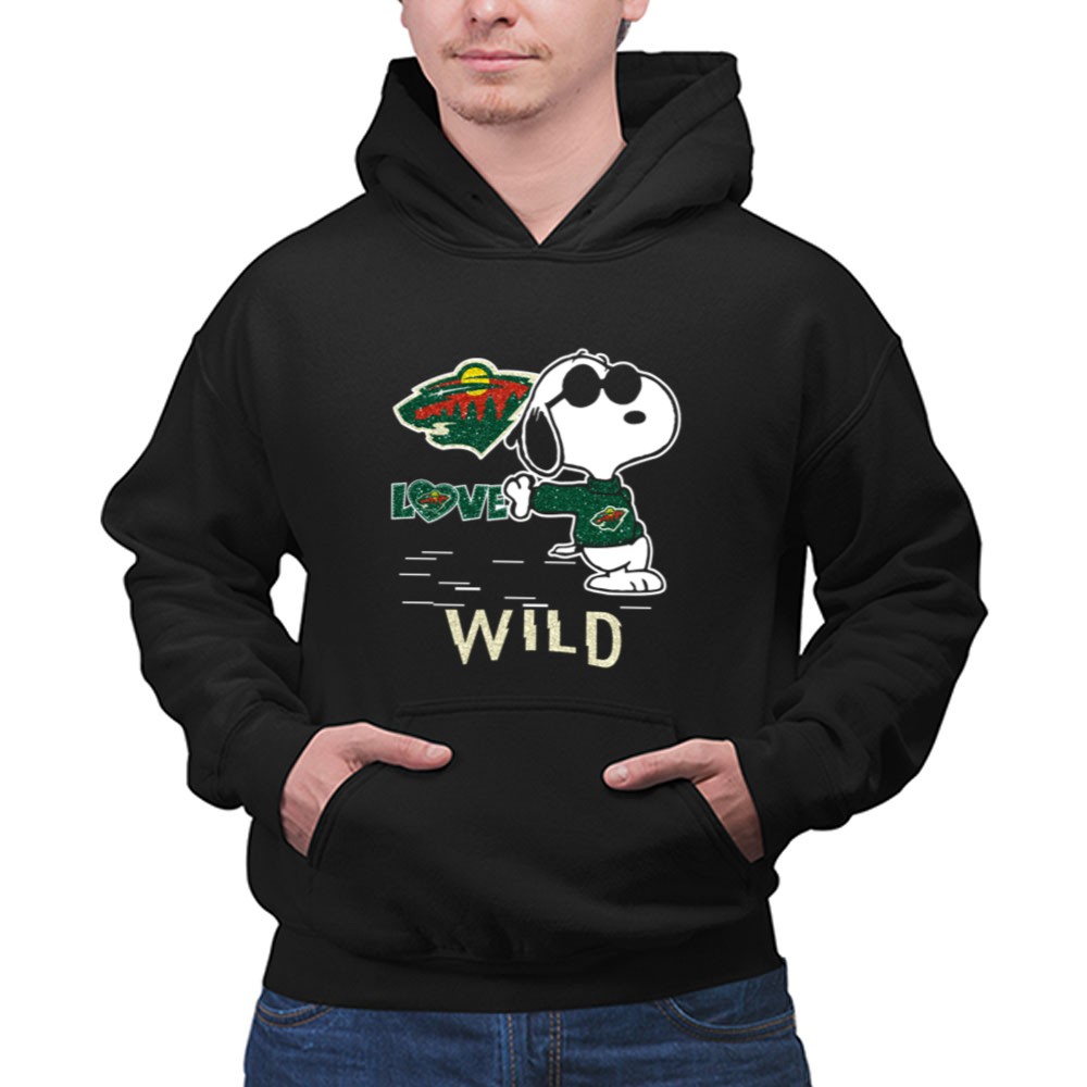 Snoopy Wearing Minnesota Wild Hockey Jersey with Love Wild Logo Elements Shirt