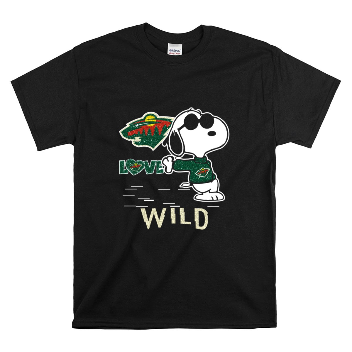 Be the first to review “Snoopy Wearing Minnesota Wild Hockey Jersey with Love Wild Logo Elements Shirt”