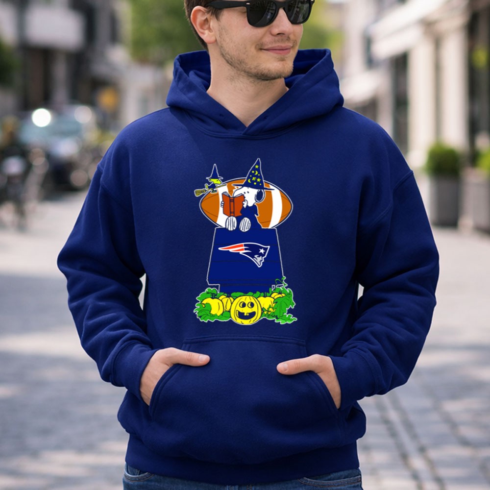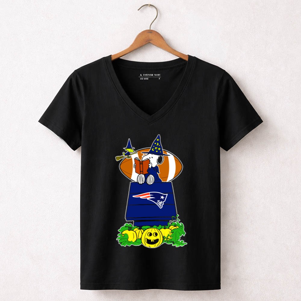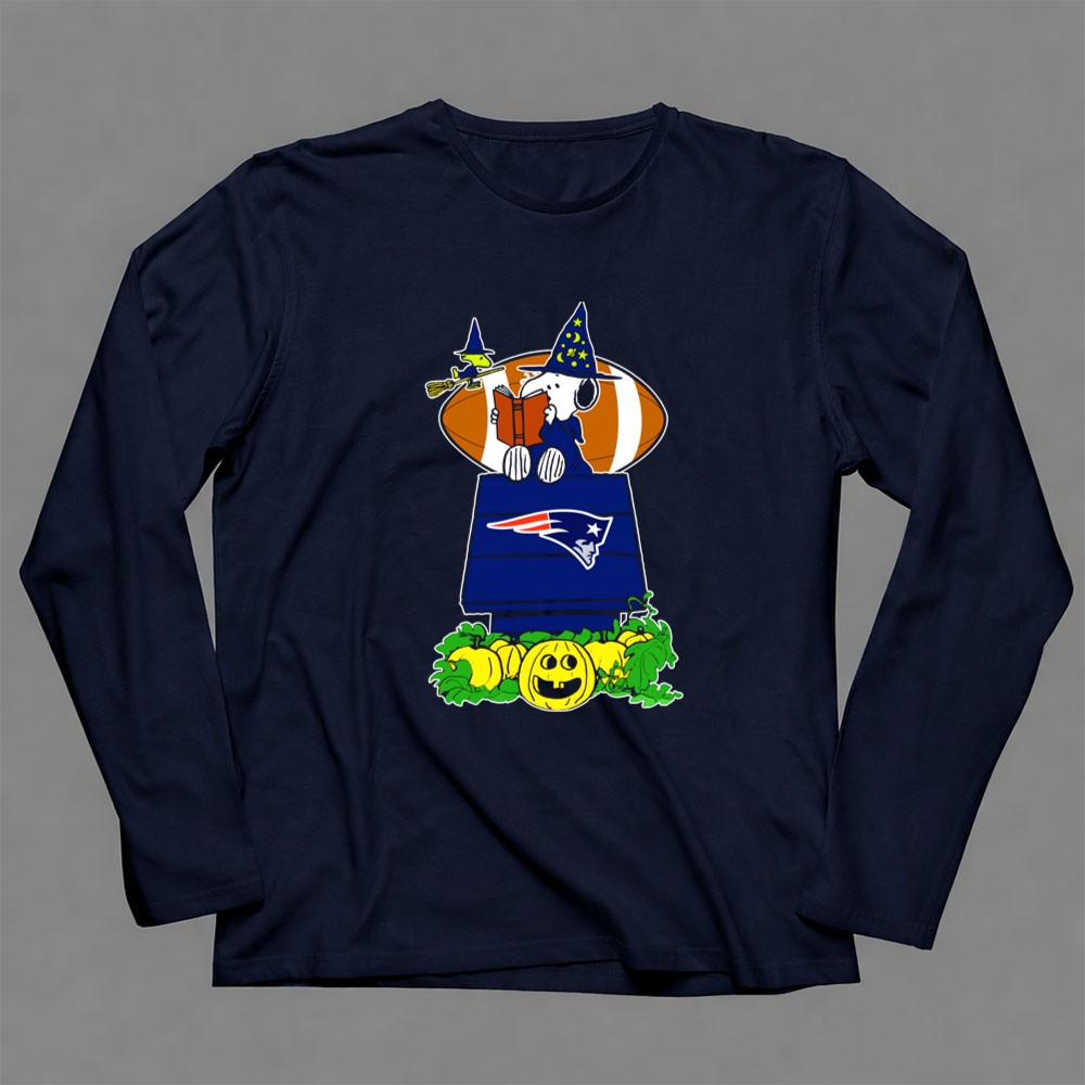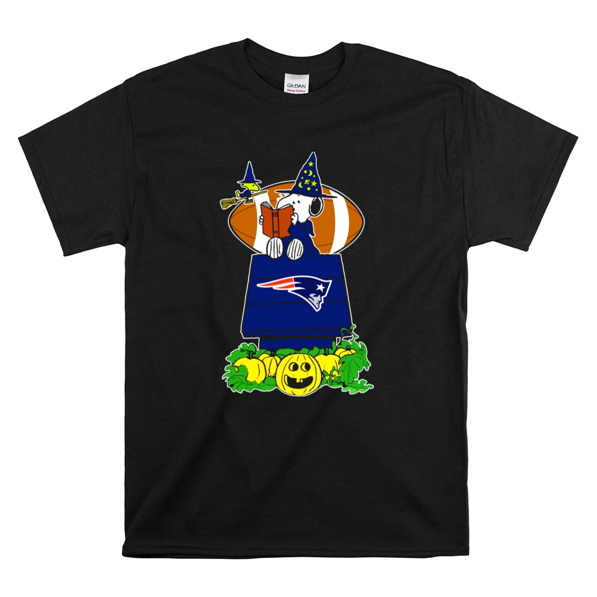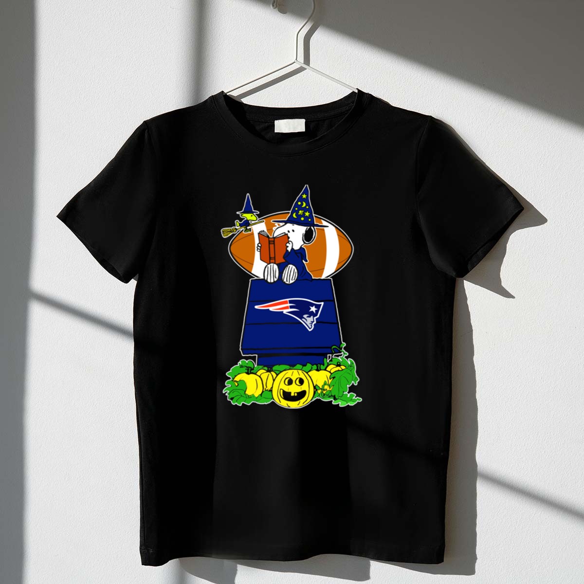 Snoopy Witch And Woodstock Halloween New England Patriots Logo Pumpkin Scene Shirt