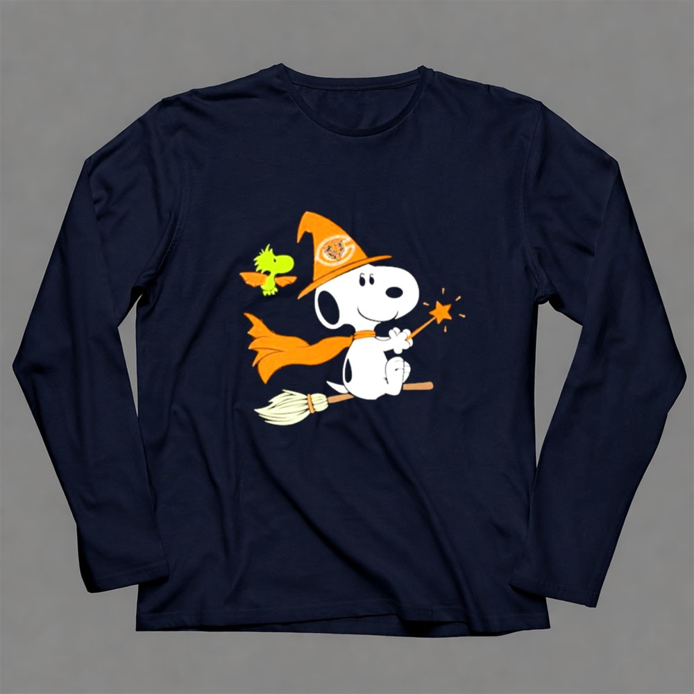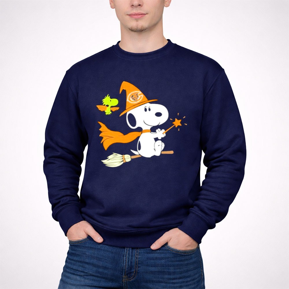 Snoopy Witch Chicago Bears Halloween Flying Broomstick Woodstock Shirt