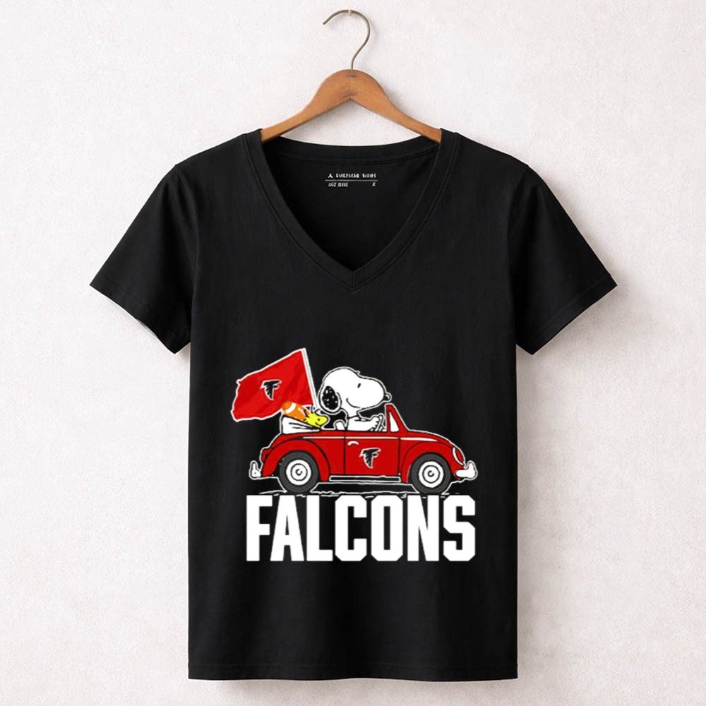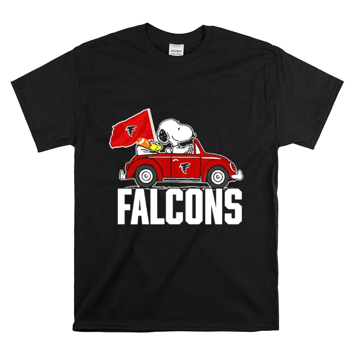 Snoopy Woodstock Driving Car With Atlanta Falcons Flag Shirt