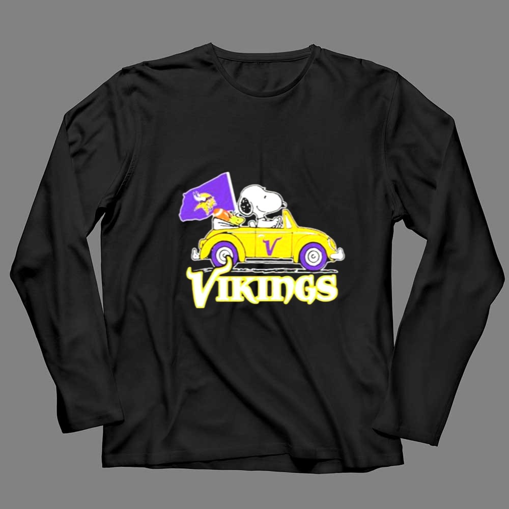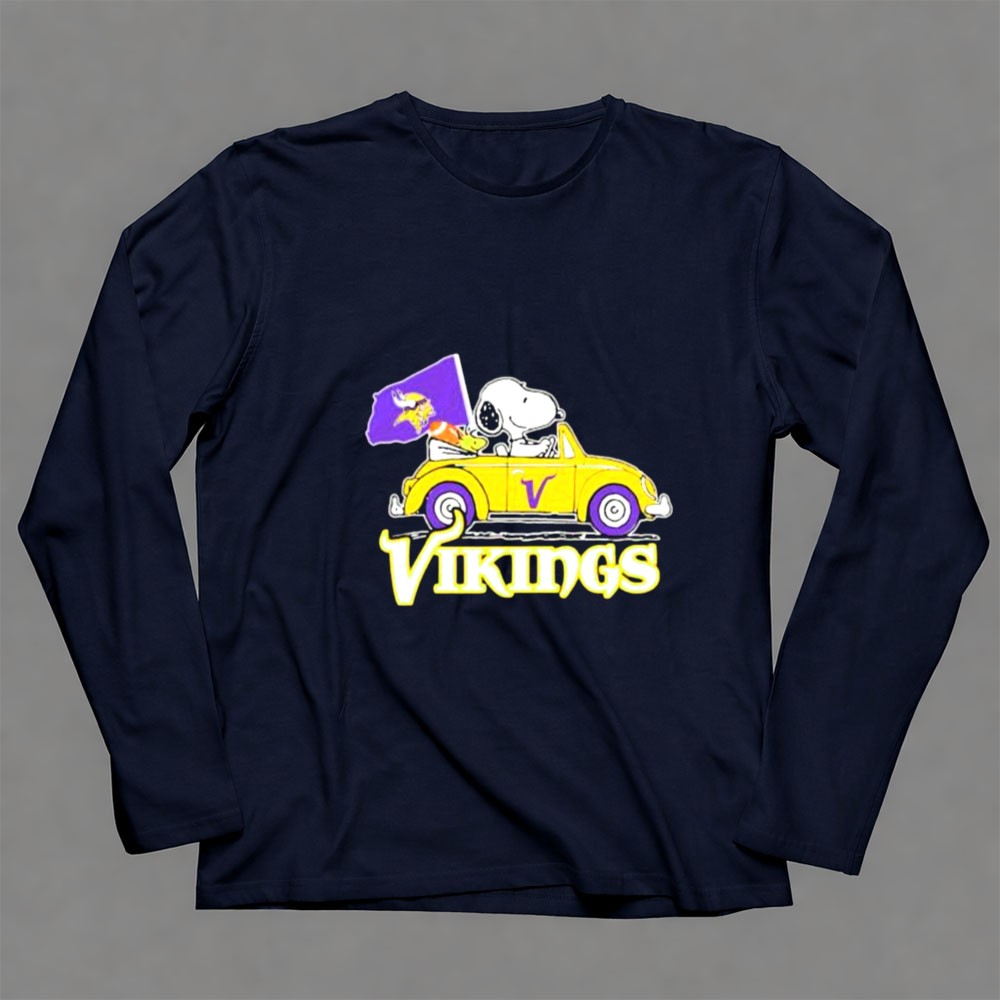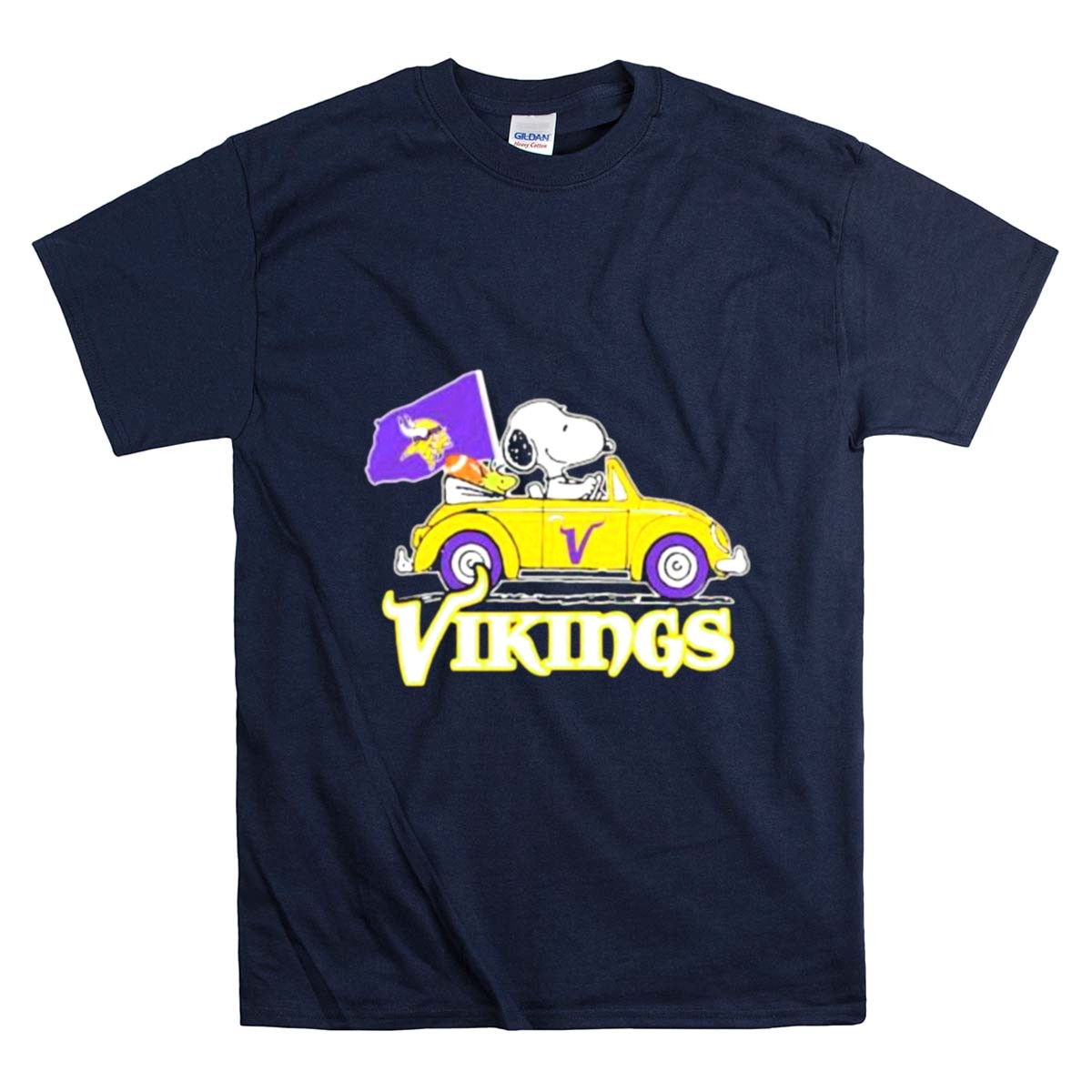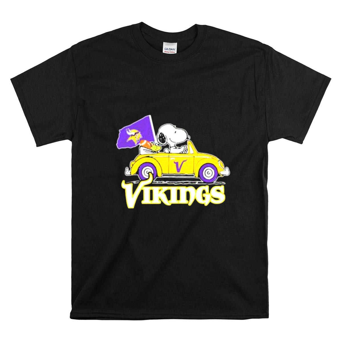 Snoopy Woodstock Driving Car With Vikings Flag Minnesota Shirt