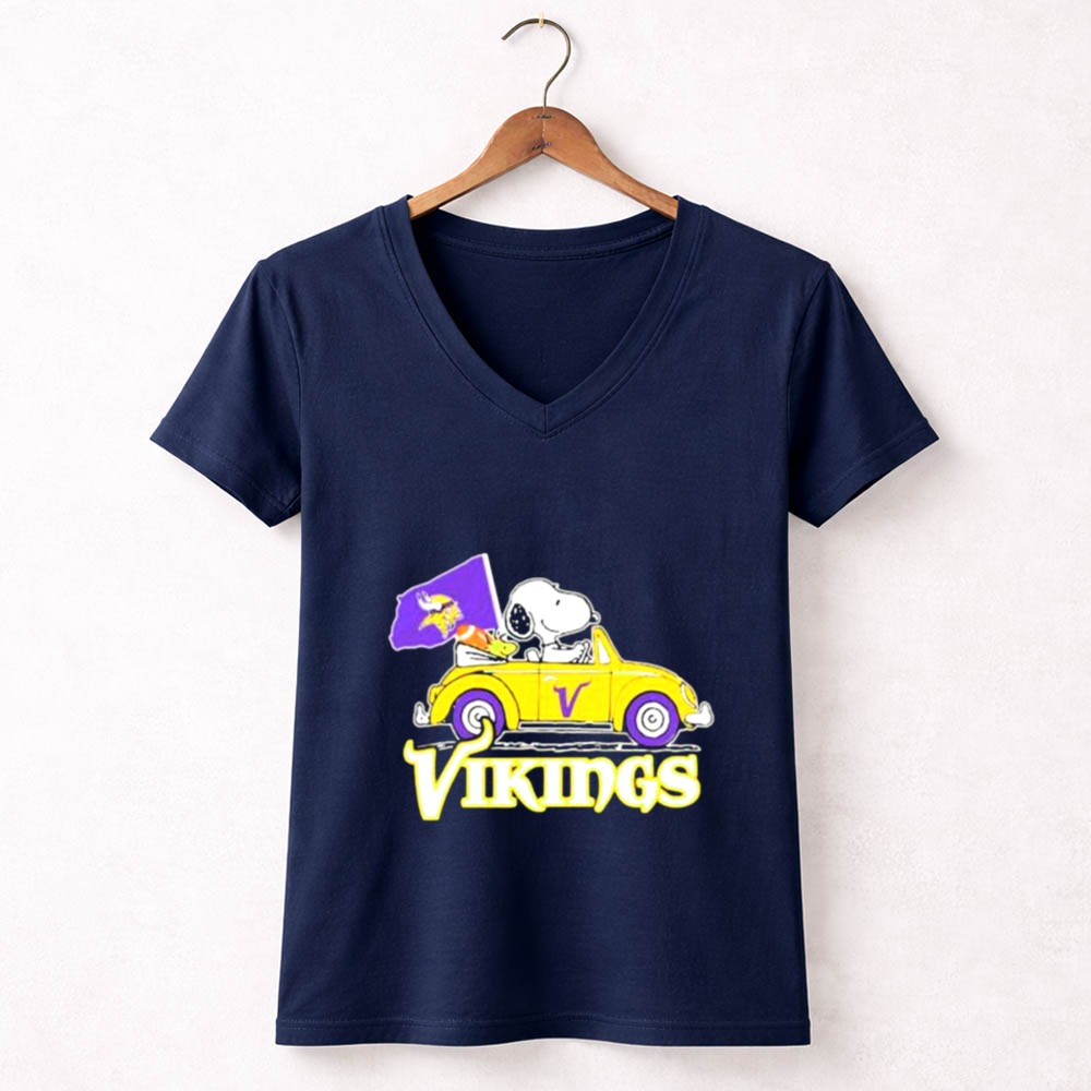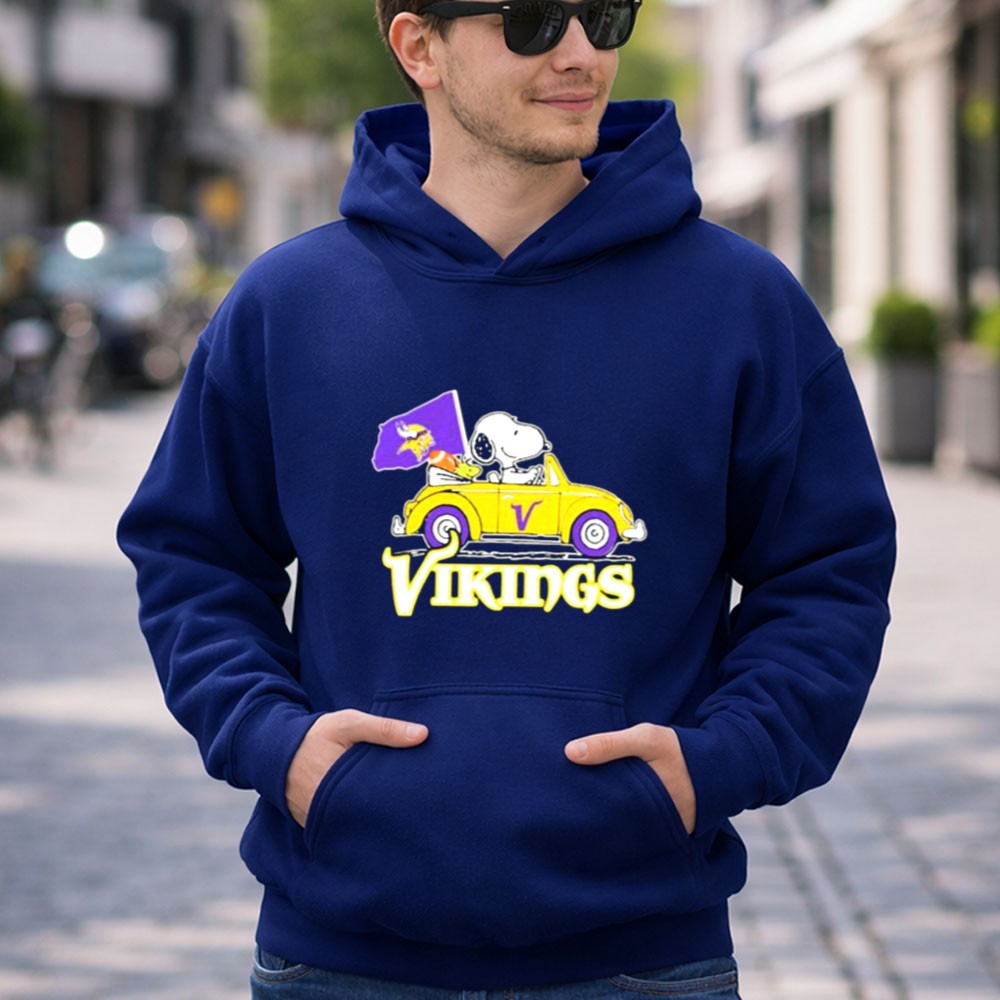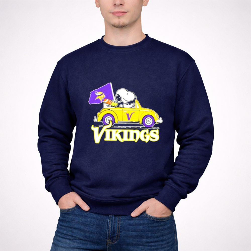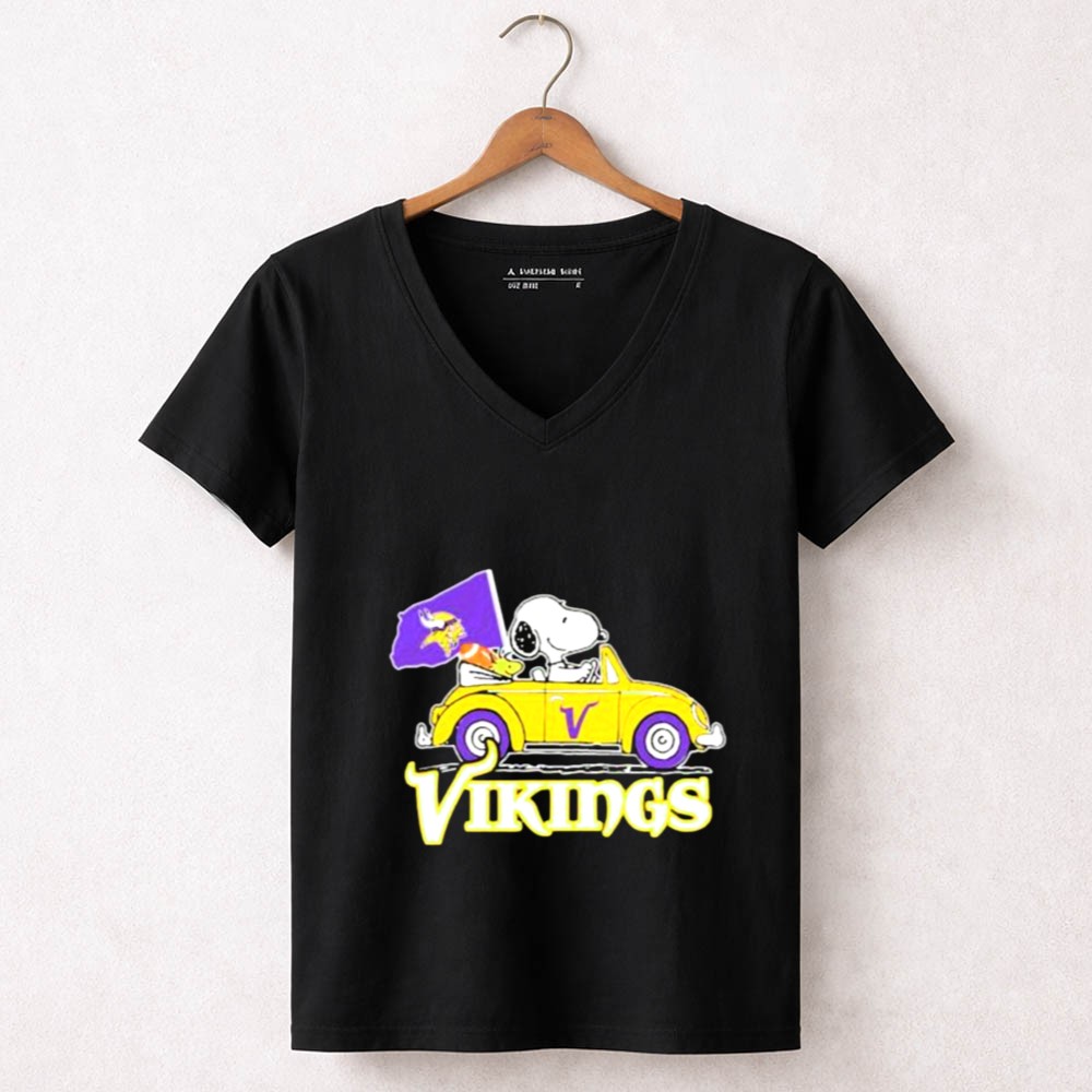Snoopy Woodstock Driving Car With Vikings Flag Minnesota Shirt