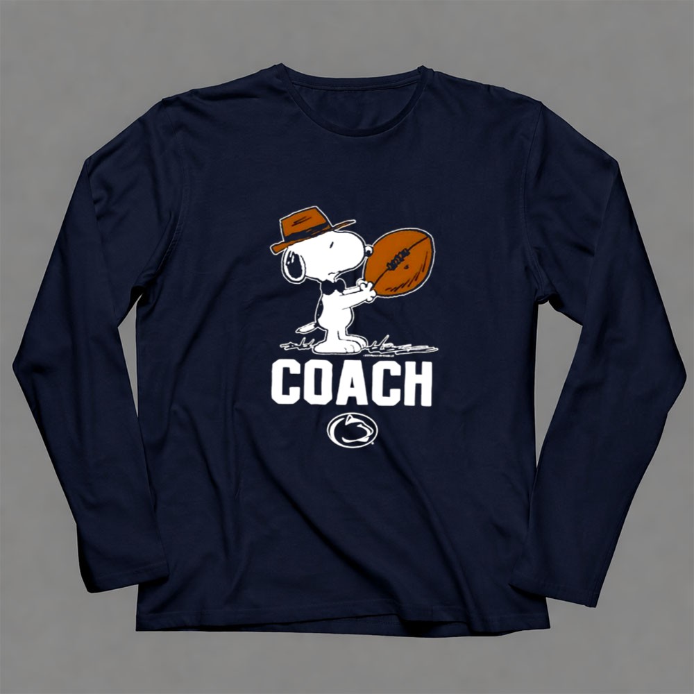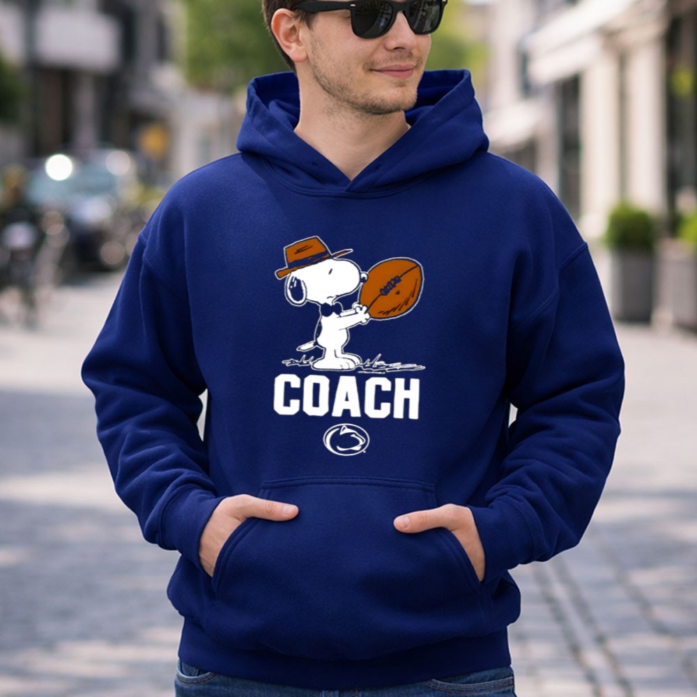 Penn State football pride, Nittany Lions coach apparel, Snoopy fan gear, college football humor, game day t-shirt, iconic cartoon crossover, NCAA spirit wear, playful football gifts