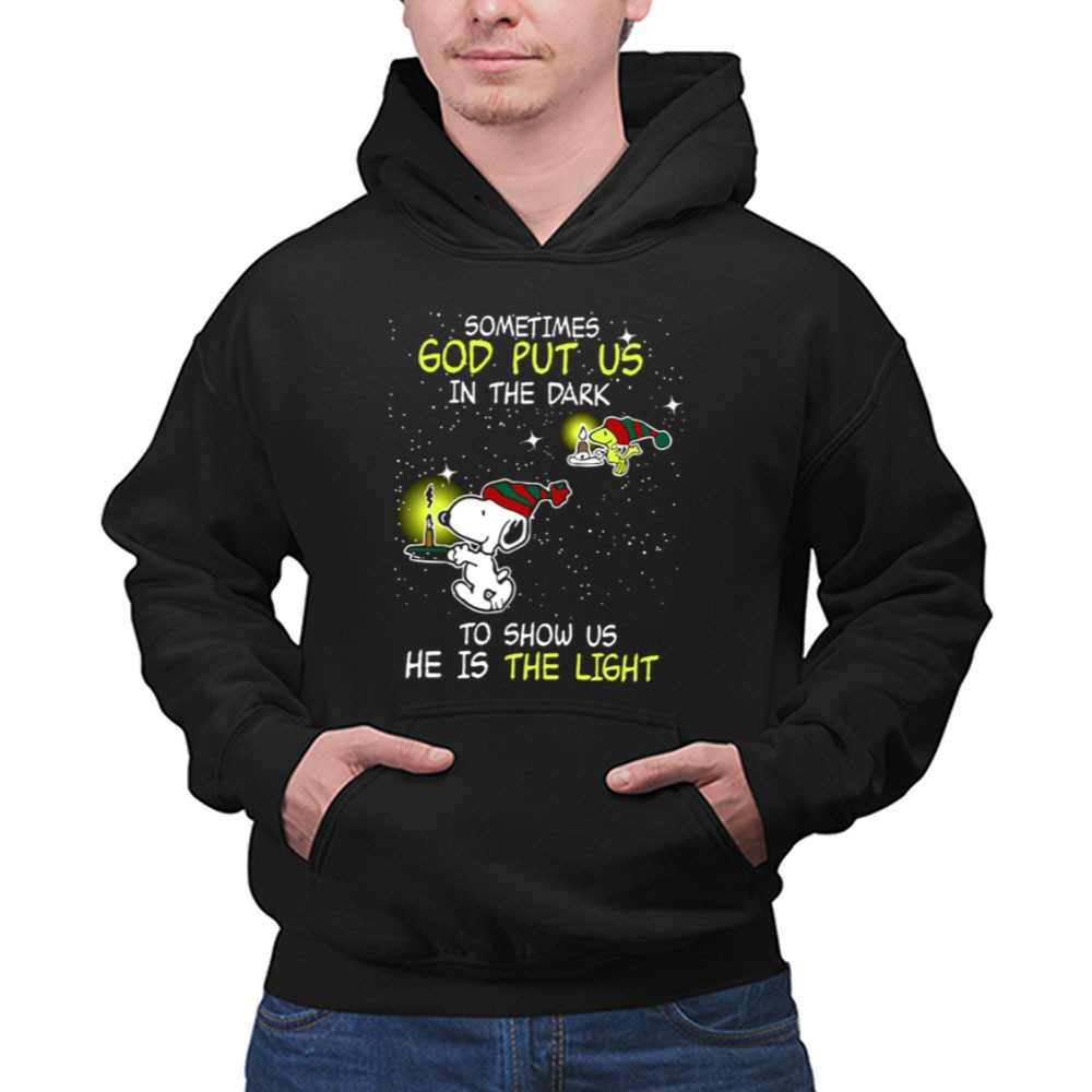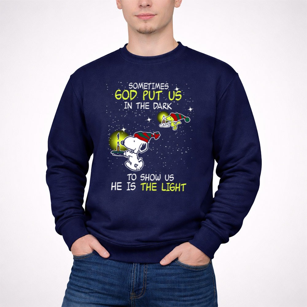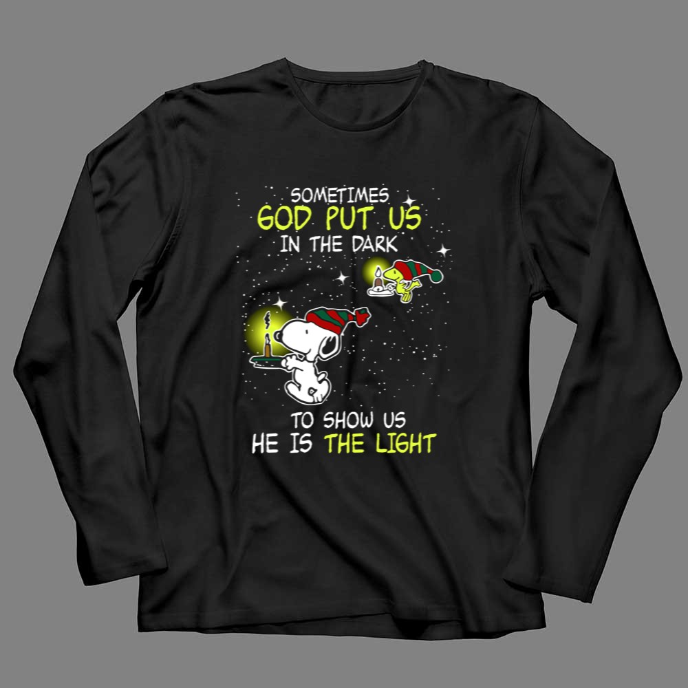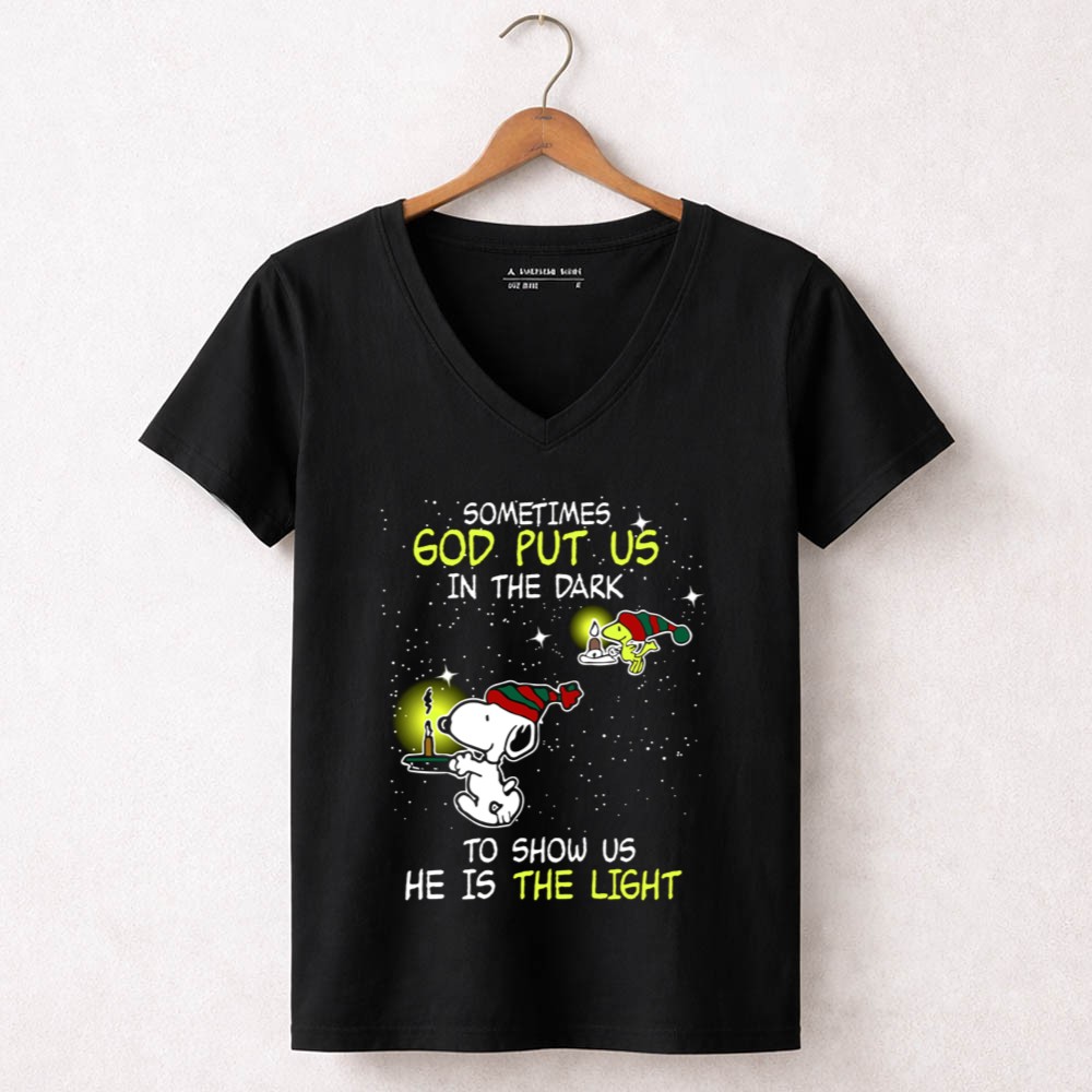 Sometimes God Put Us in the Dark He Is the Light Snoopy and Woodstock Candles Shirt