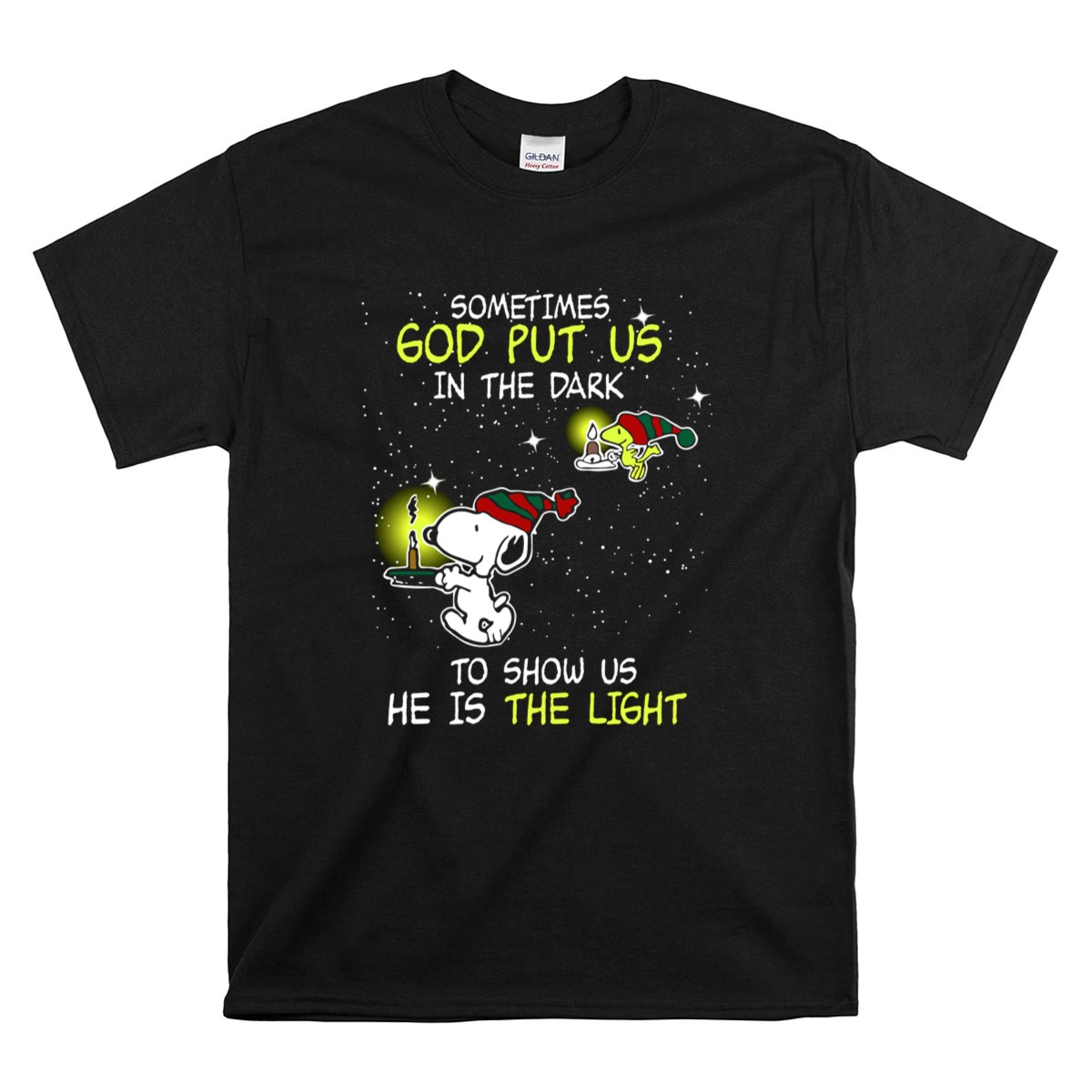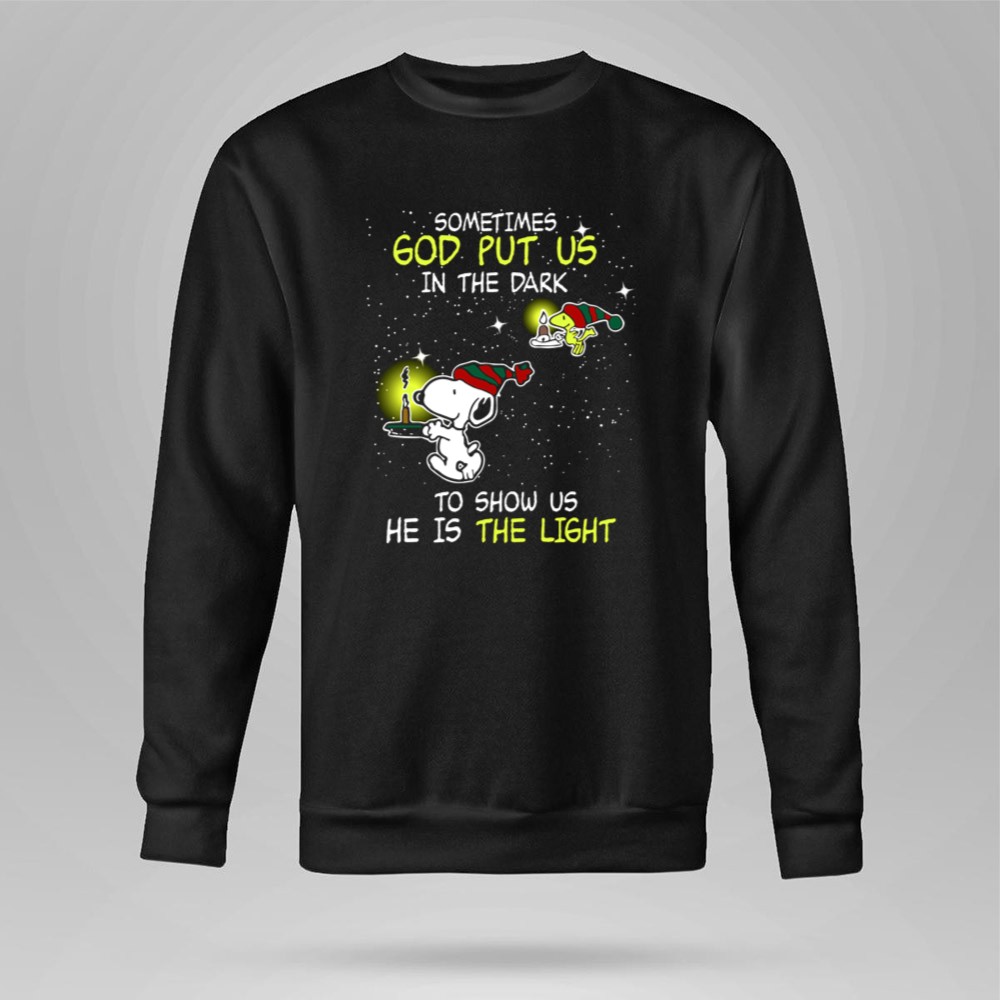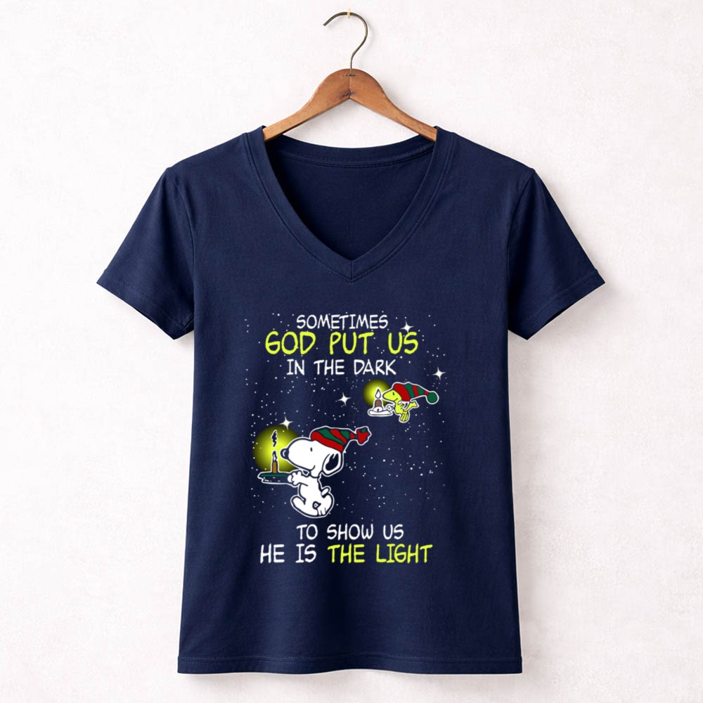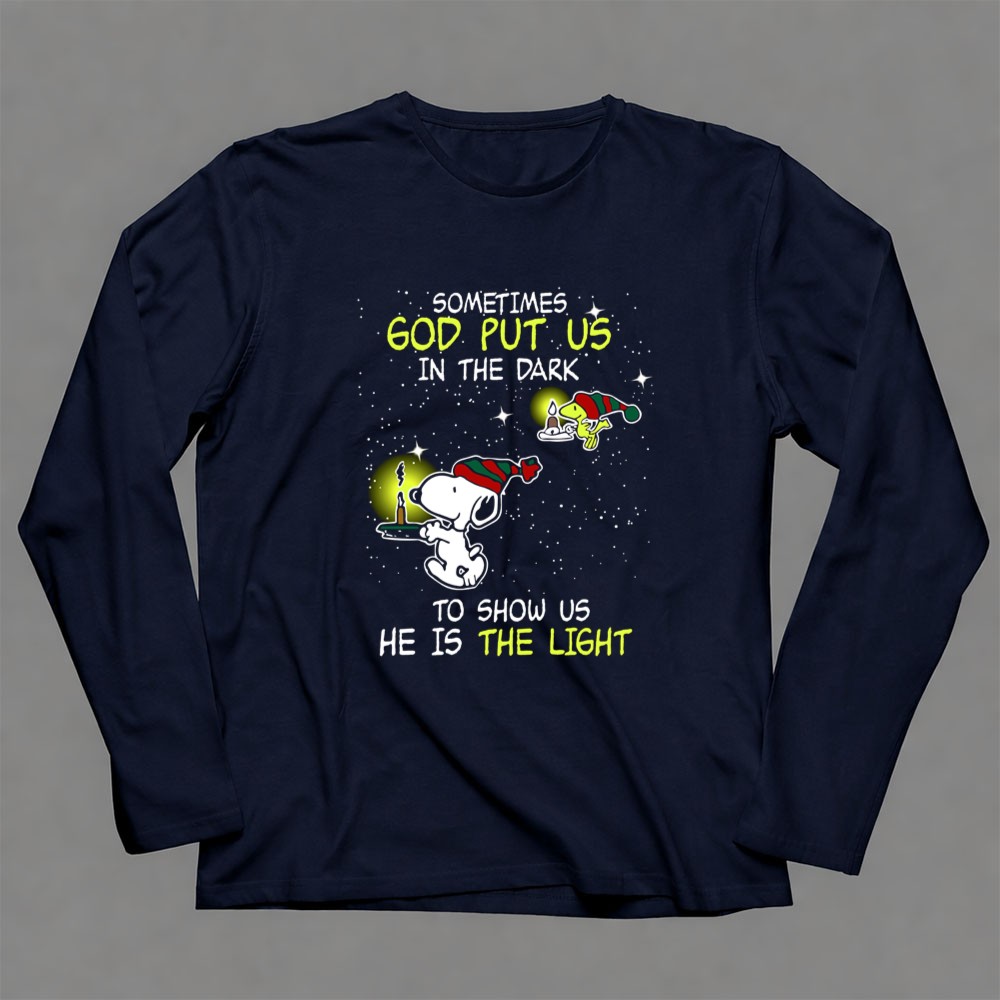 Sometimes God Put Us in the Dark He Is the Light Snoopy and Woodstock Candles Shirt
