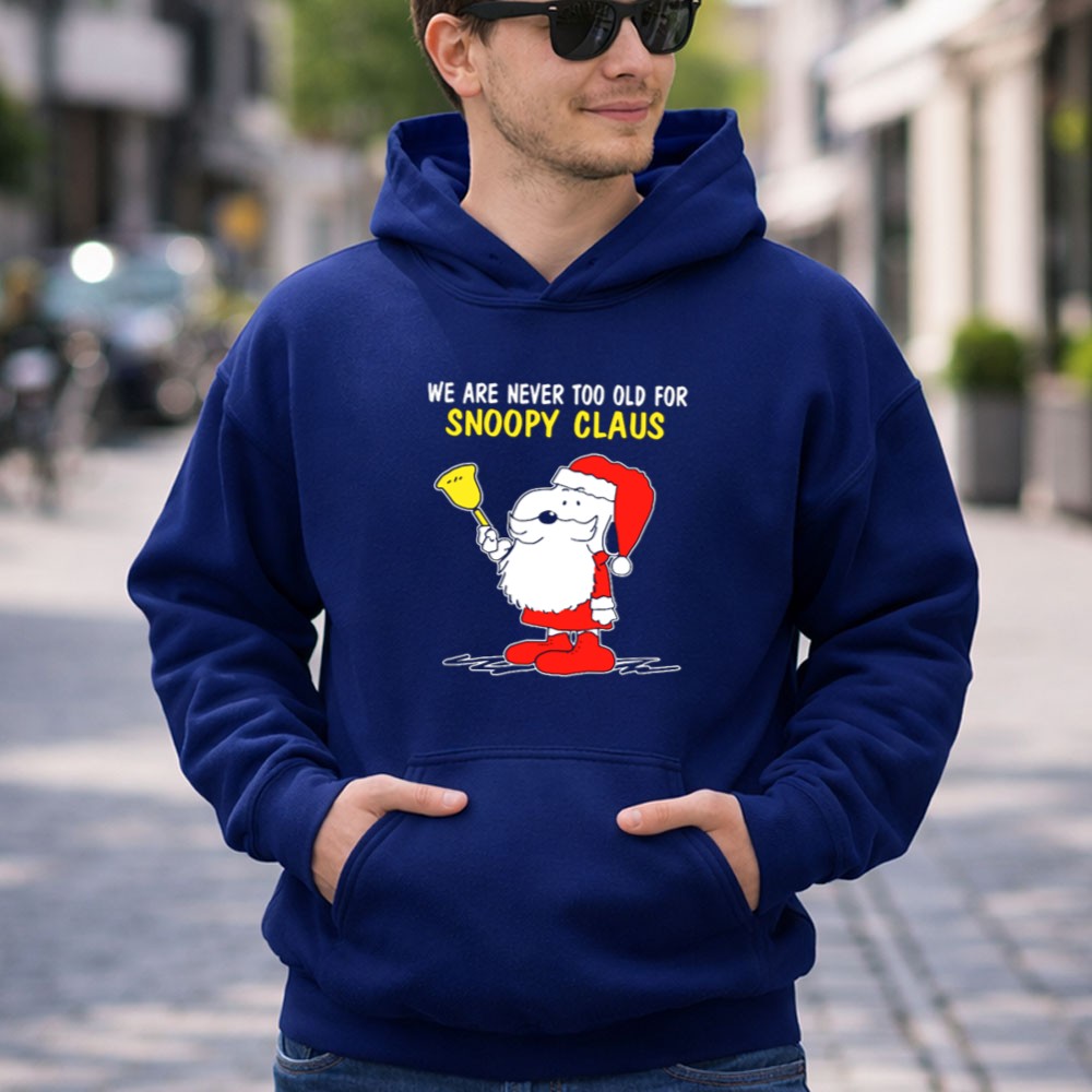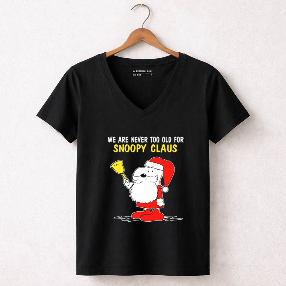 Be the first to review “We Are Never Too Old for Snoopy in Santa Claus Outfit Holding Christmas Bell Shirt”