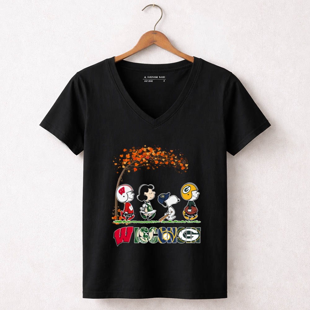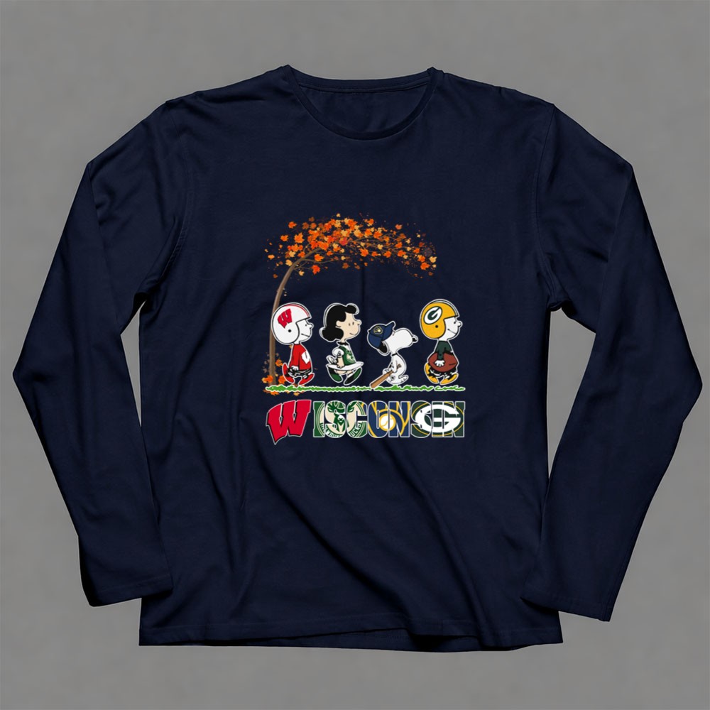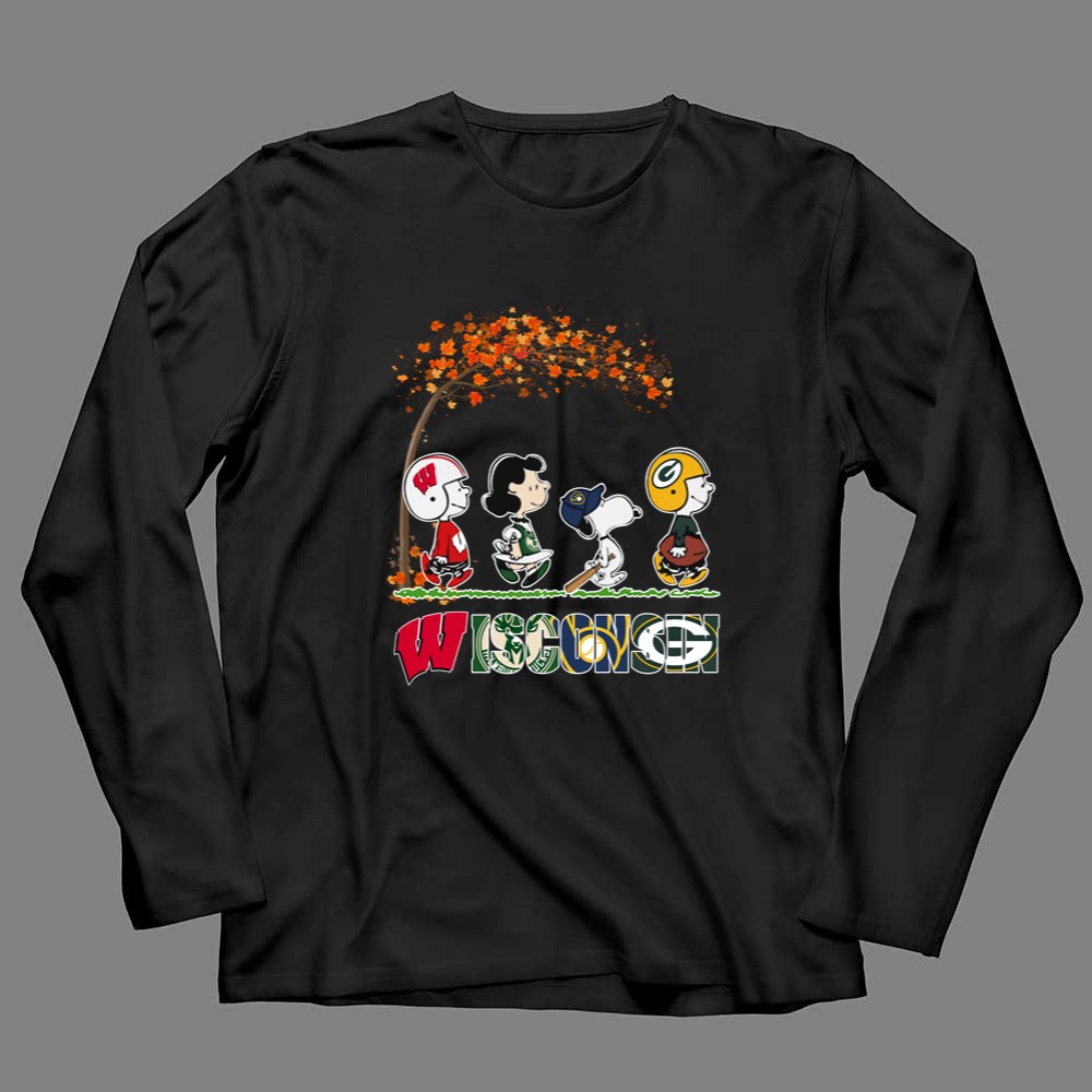Wisconsin And Other Sport Teams Snoopy Under The Fall Tree Shirt