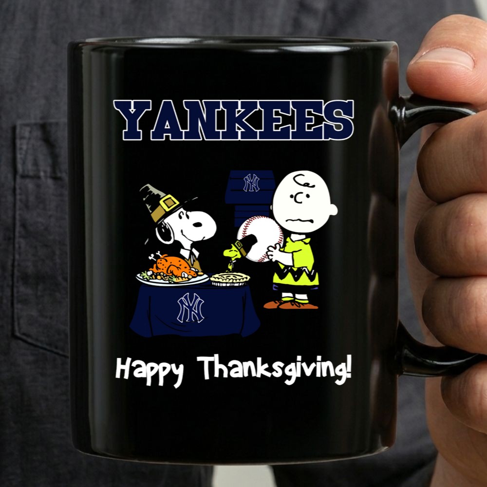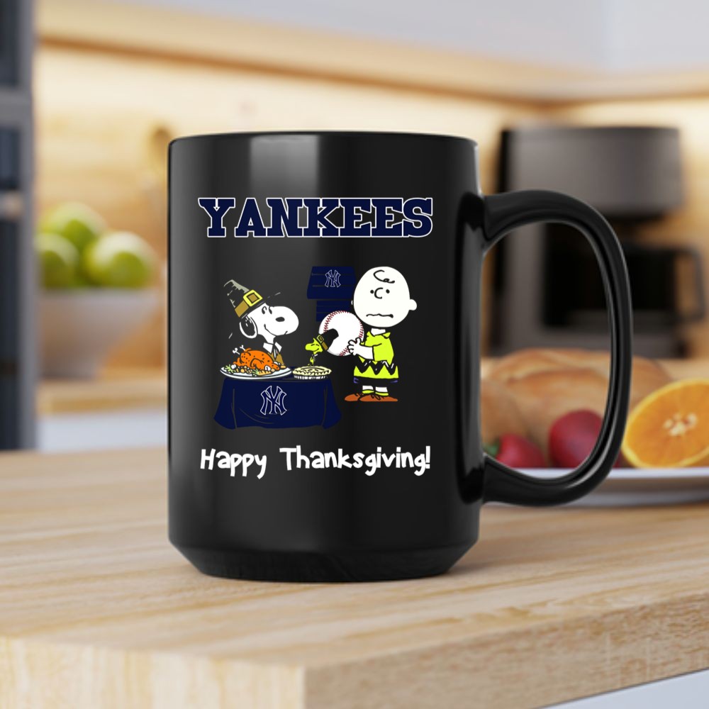 Yankees Snoopy Charlie Brown Happy Thanksgiving Mug